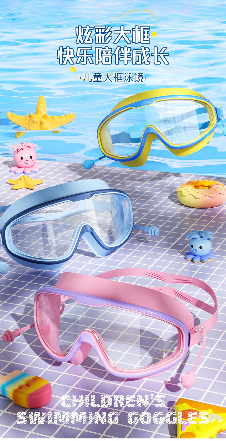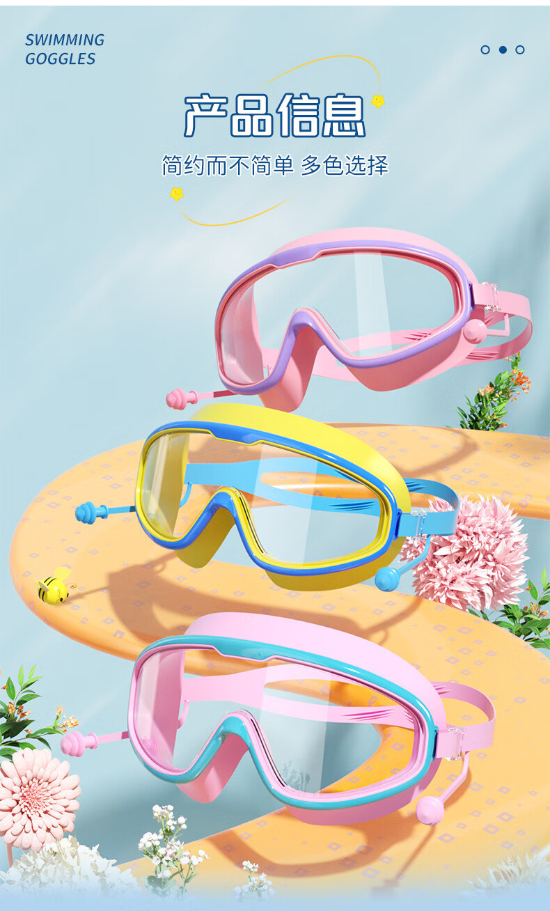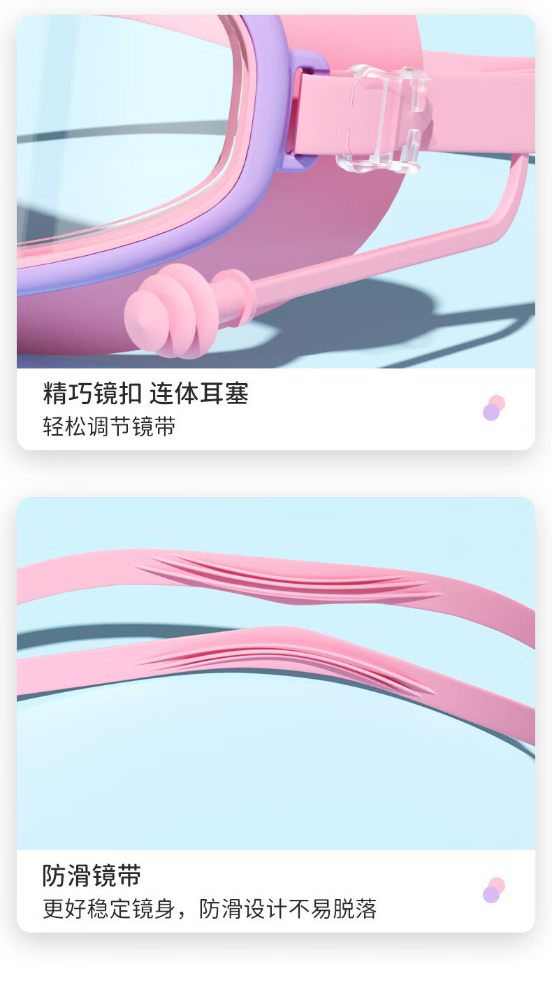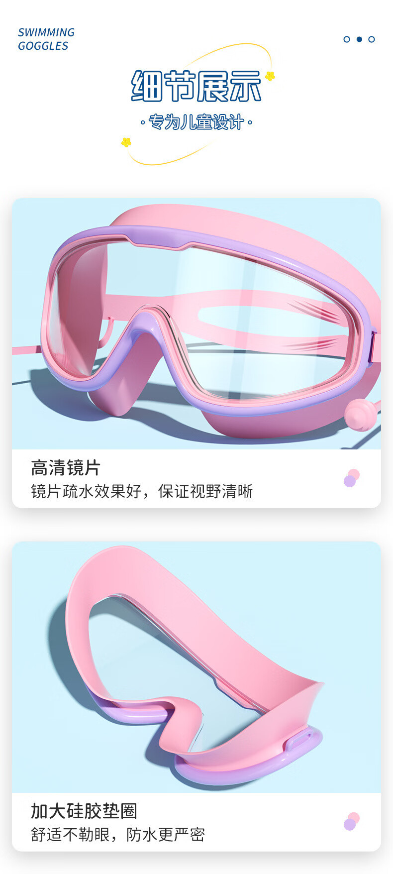 Children's large-frame swimming goggles, high-definition waterproof and anti-fog swimming goggles, silicone swimming cap diving set, pink and green swimming goggles (boxed) + silicone swimming cap
