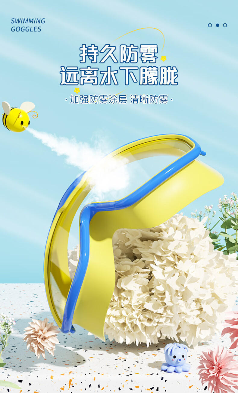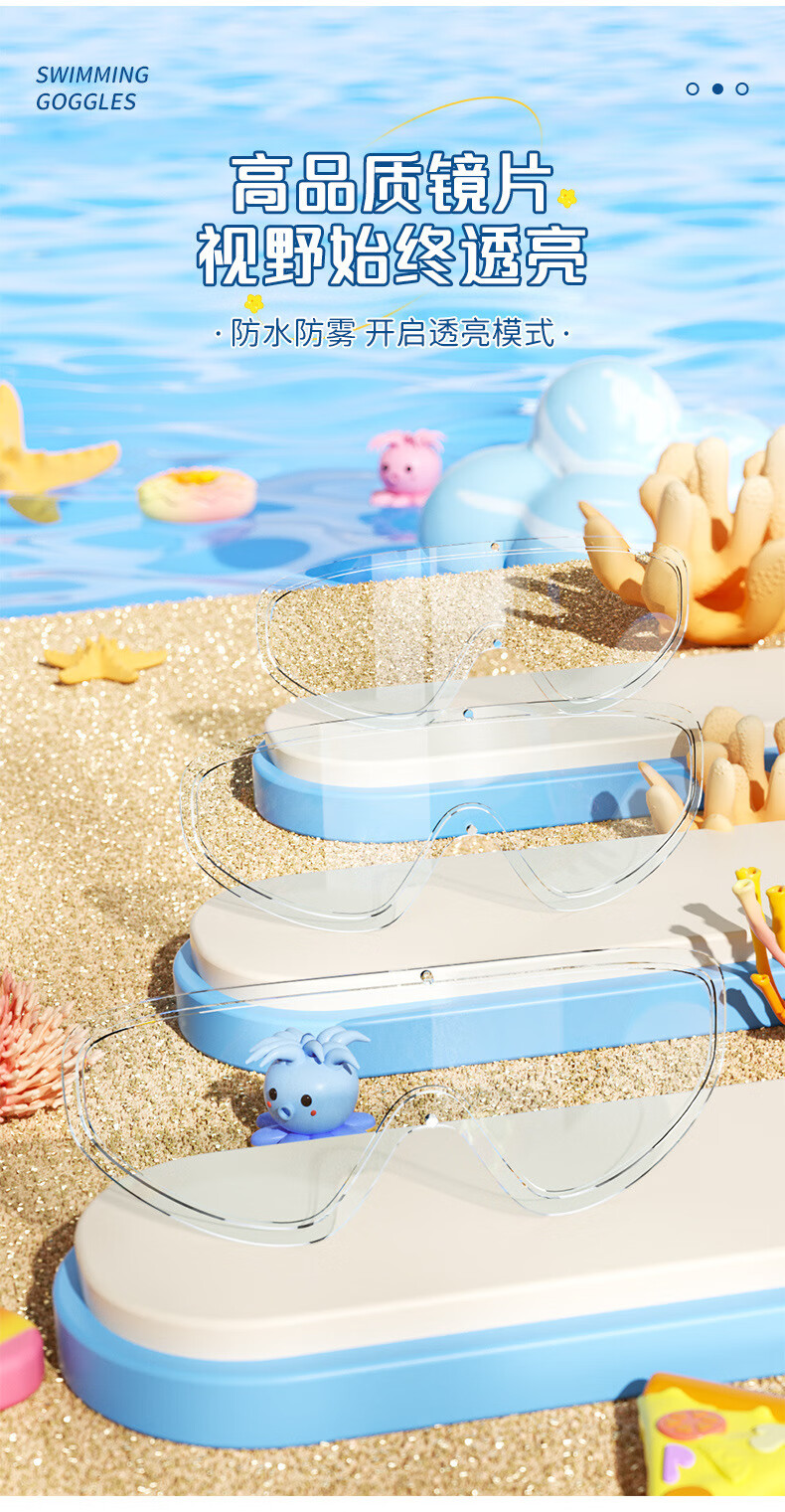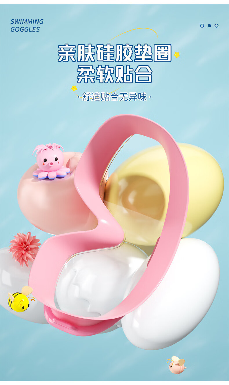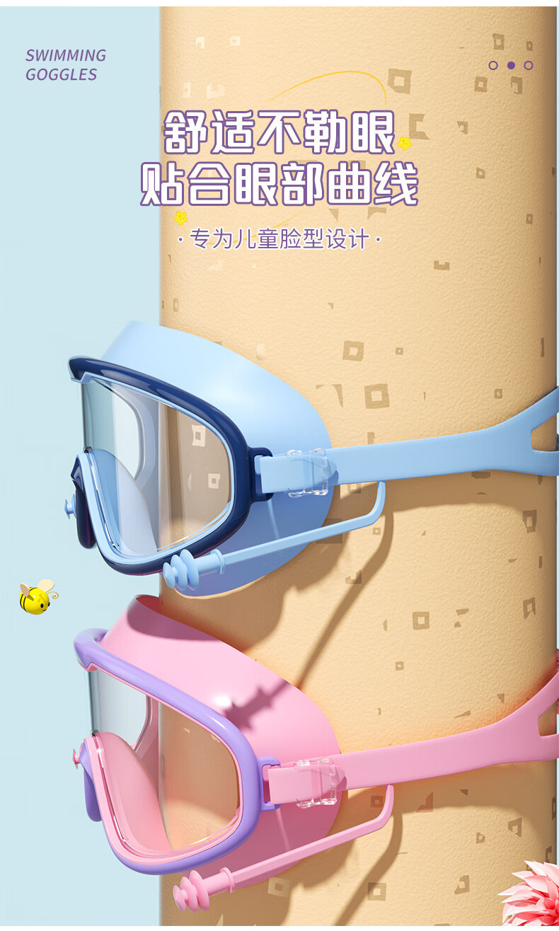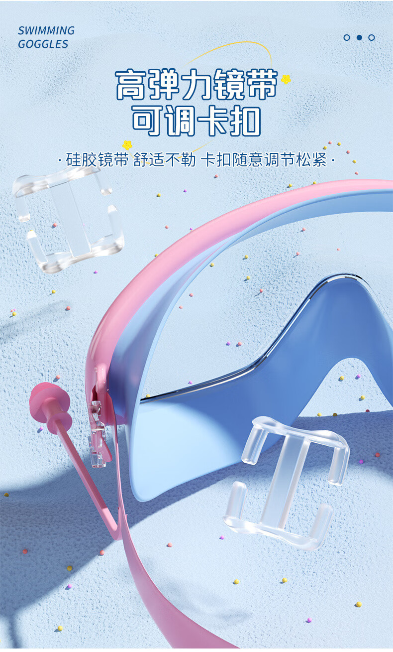 Children's large-frame swimming goggles, high-definition waterproof and anti-fog swimming goggles, silicone swimming cap diving set, pink and green swimming goggles (boxed) + silicone swimming cap