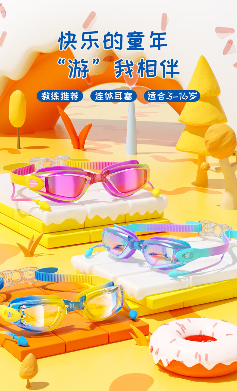 Children's swimming goggles high-definition waterproof and anti-fog swimming goggles for boys and girls children's swimming goggles - blue and yellow electroplating - boxed
