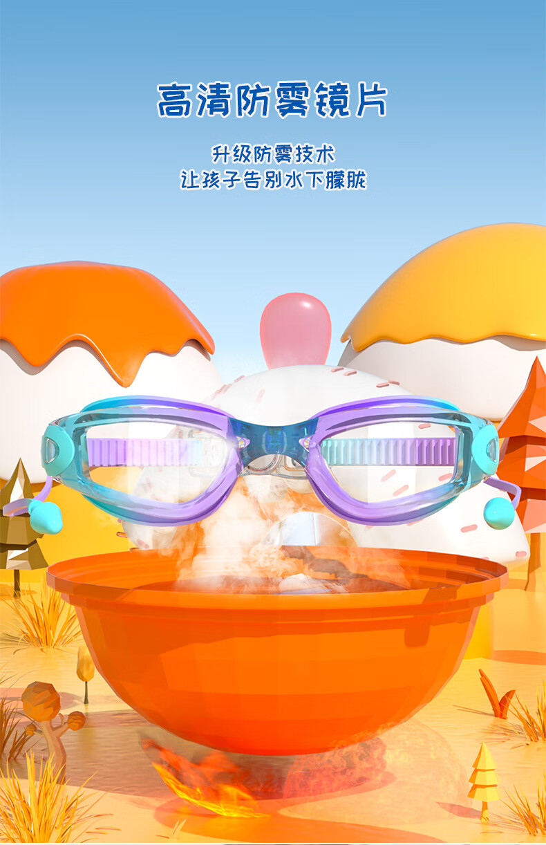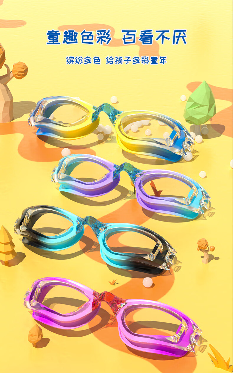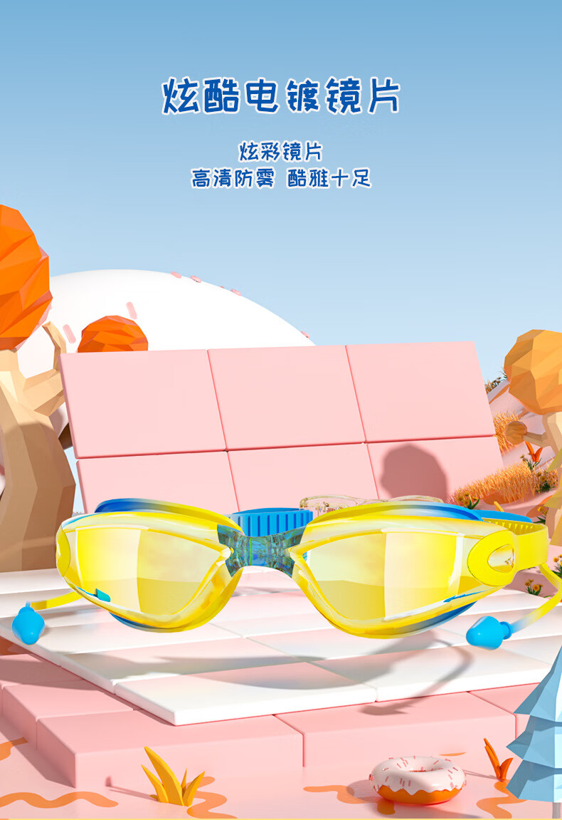 Children's swimming goggles waterproof and anti-fog HD swimming goggles for boys and girls cartoon eye protection equipment black and blue electroplating + cartoon swimming cap