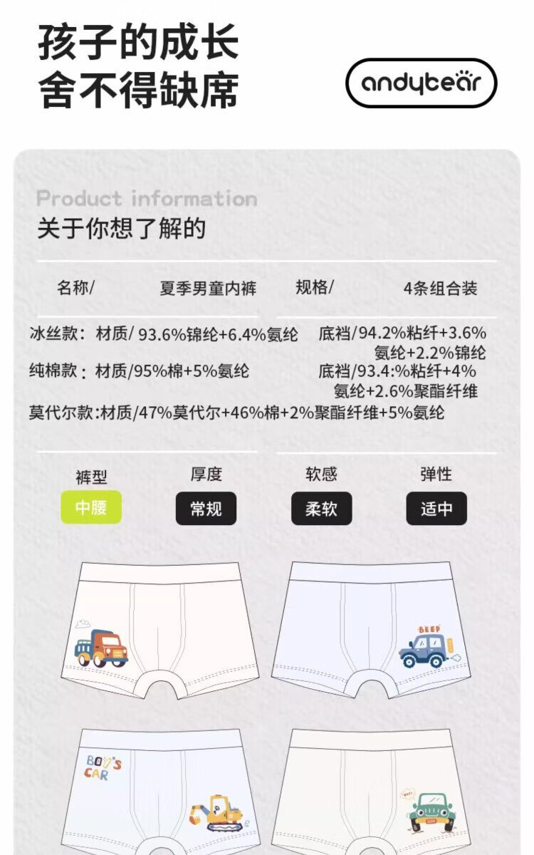 Abedila boys' underwear children's pure cotton baby infant summer thin children's boy's boxer shorts 100% cotton 7A antibacterial - Greno Auto - 4 pack 110 --- Recommended weight 25-35 Jin Jin equals 0.5 kg