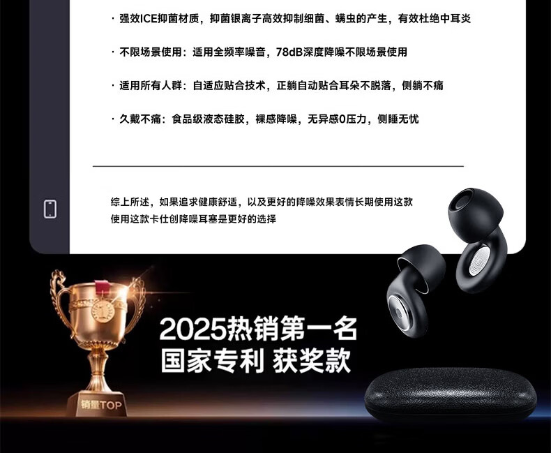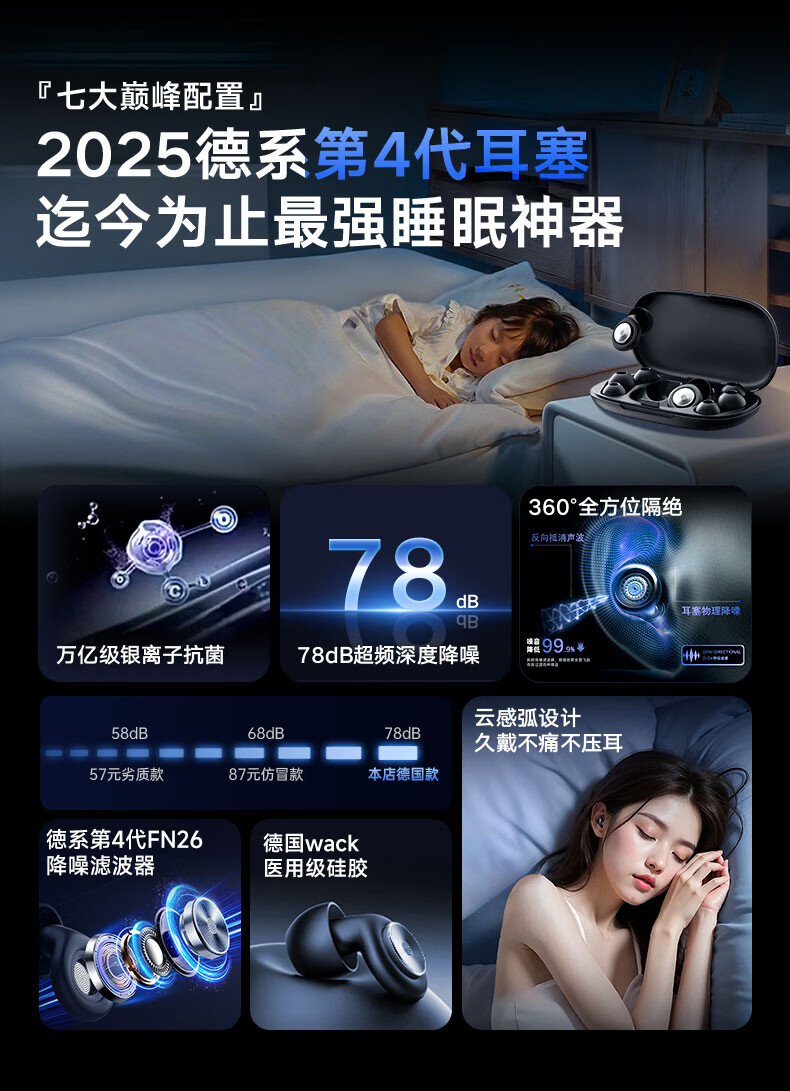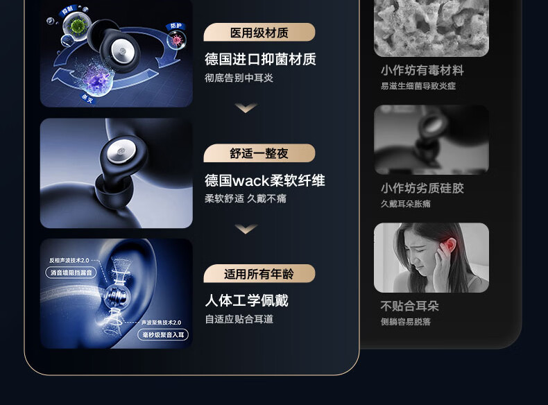 Castron Sound Isolation and Noise Reduction Top Sleep Earplugs Filter Anti-noise Sound Isolation Sleep Deep Noise Reduction Noise Reduction Silent Painless Side Sleeping No Ear Pressure Snoring and Snoring Artifact Special Night Black丨Double Effect Noise Reduction Earplugs Active Noise Reduction 100% Ergonomics Comfortable and No Feeling