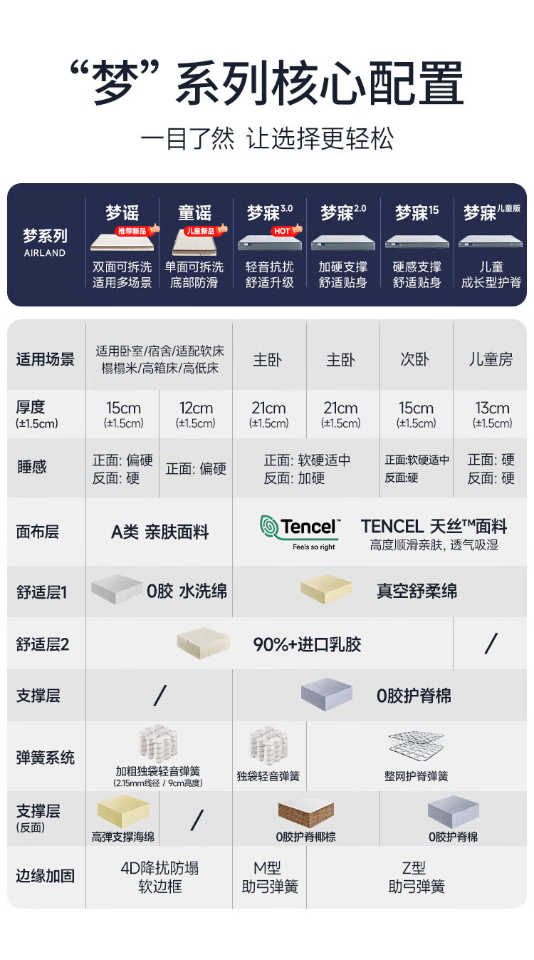 Yalan Brand Top Ten Natural Latex Mattress Coconut Palm Mat Simmons Spring Mattress Hard Mat Mengmei Nursery Rhymes 12CM Spine Support Single Side Detachable 1.8x2 Meters