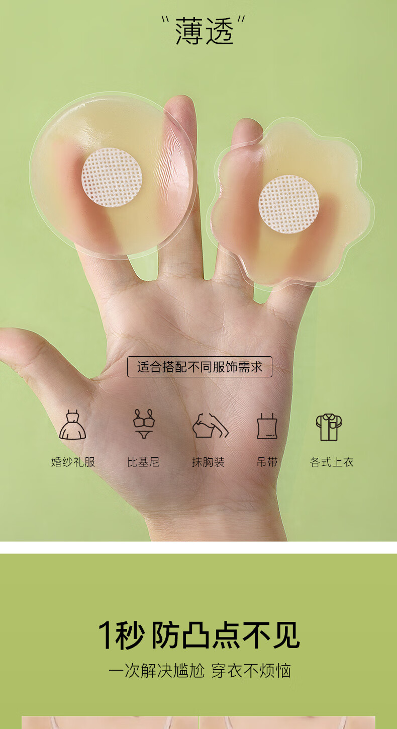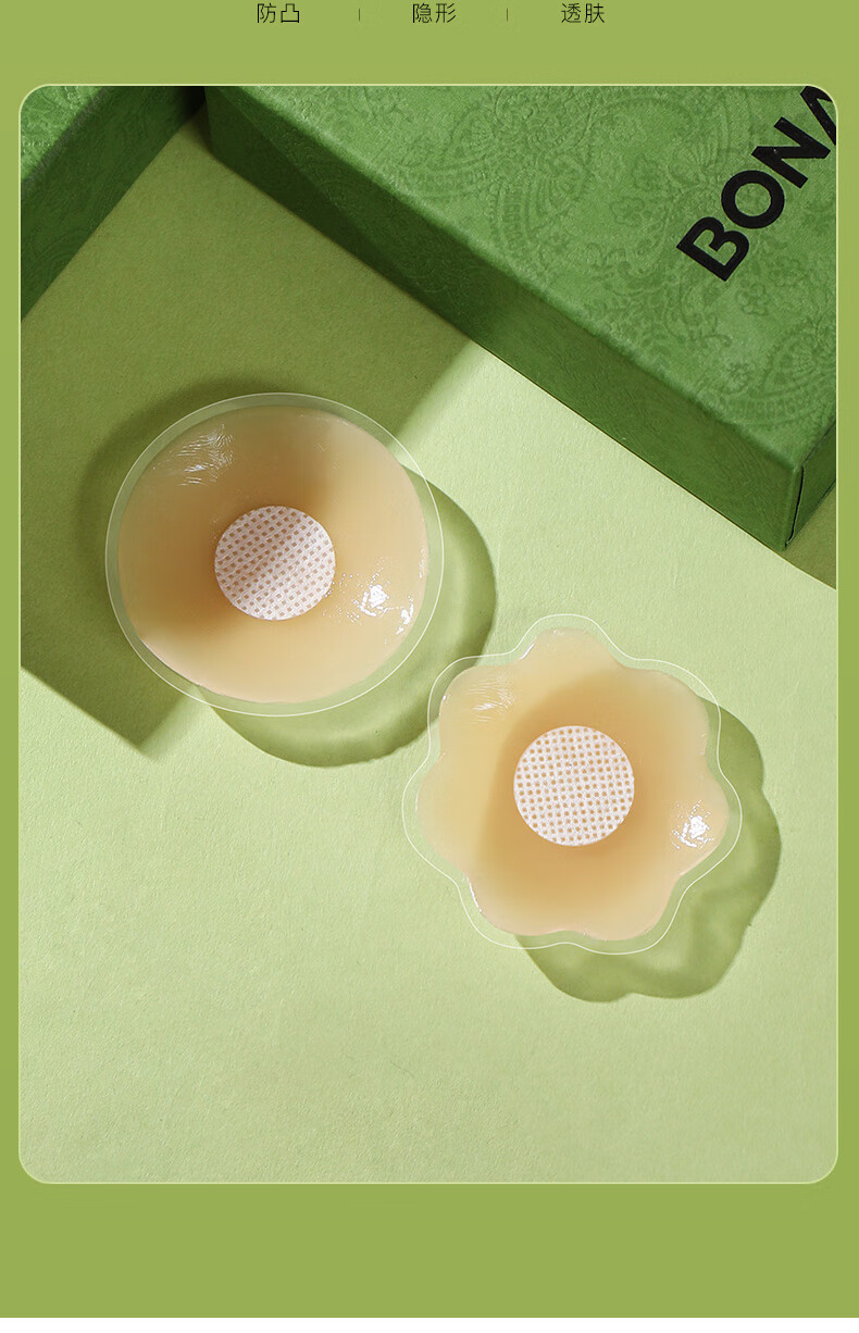 10 pairs of Baonasi breast patches, invisible, traceless, anti-slip, anti-slip, anti-bump silicone breast patches, 5 flower shapes + 5 round shapes