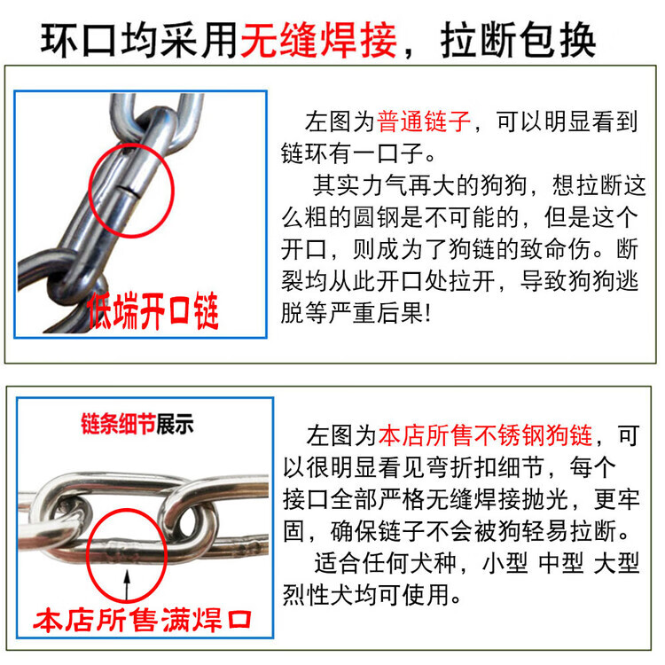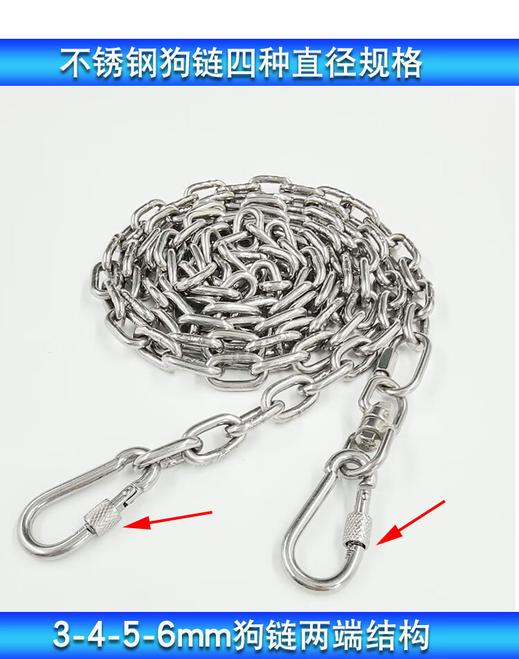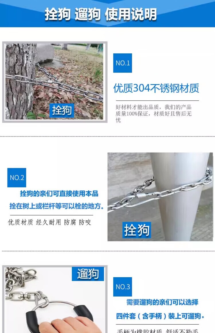304 stainless steel dog leash, traction rope, neck collar, dog leash, large, medium and small dog iron chain collar, dog leash, anti-bite, 3mm thick, suitable for 12-40Jin, Jin is equal to 0.5kg, 3m