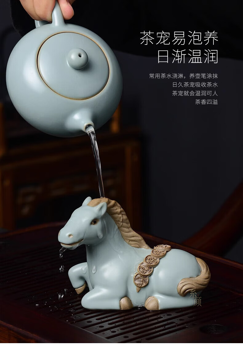 Xian Yan household can raise open-piece Ru porcelain tea pet ornaments - make money immediately tea table tea table ornaments light luxury Tianqing Ru porcelain tea pet - make money immediately