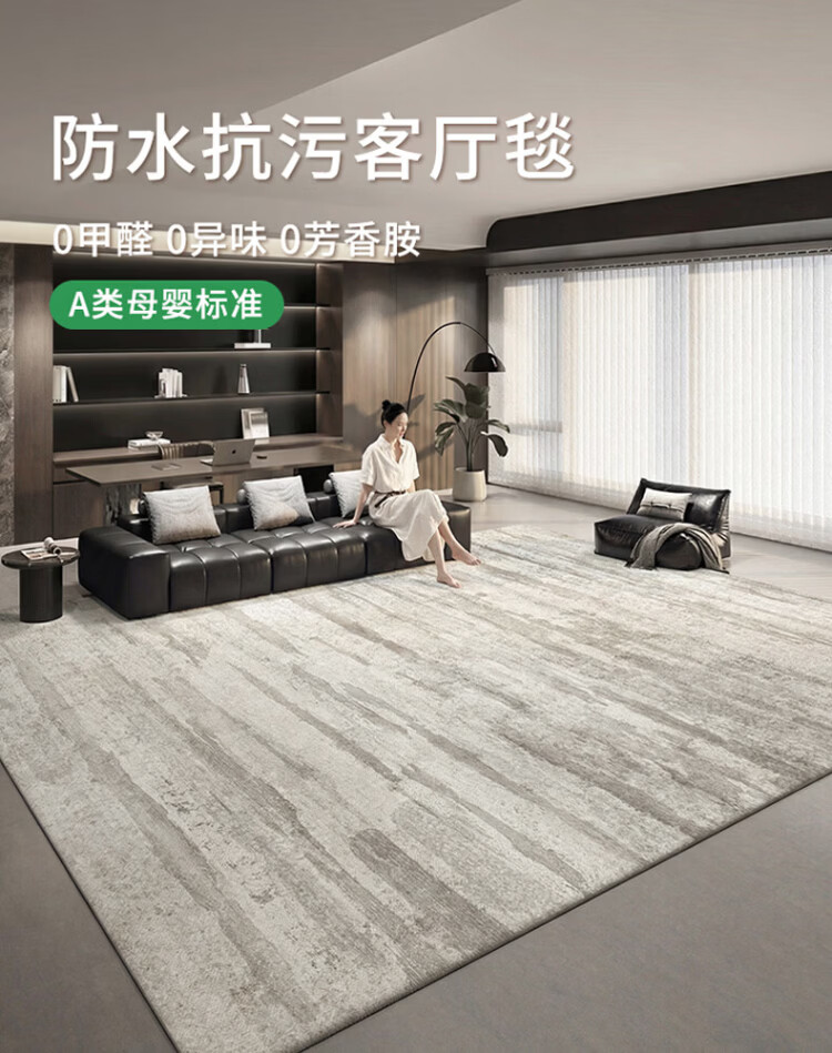 Budisi autumn and winter plush carpet living room light luxury bedroom large area thickened sofa high-end no-wash wipeable gray waterproof flow shadow anti-stain imitation cashmere 200*300CM versatile recommended size