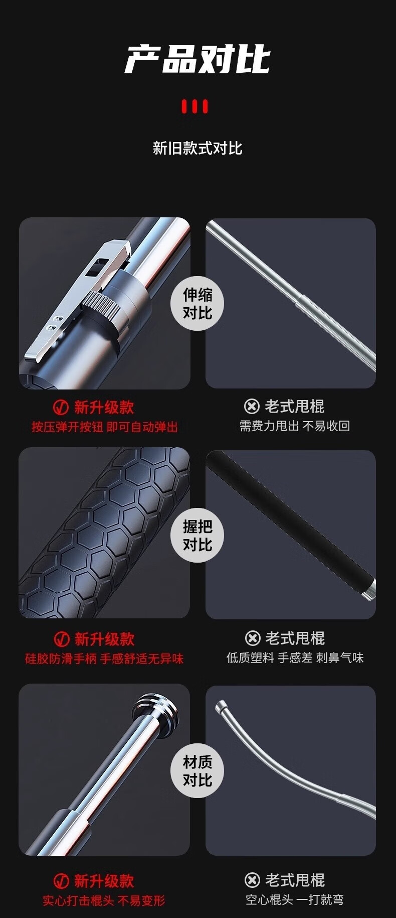 MDNG German quality automatic pop-up self-defense swing stick car protective window breaker alloy steel stick retractable telescopic stick quenched alloy steel 16 inches portable and compact