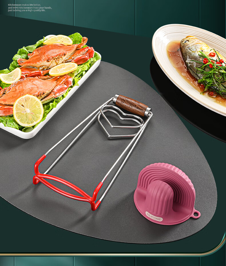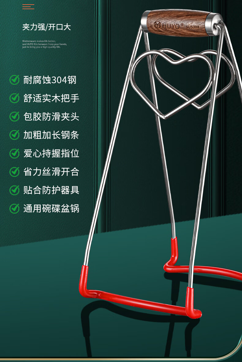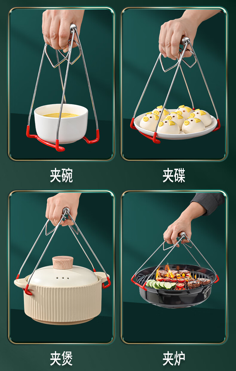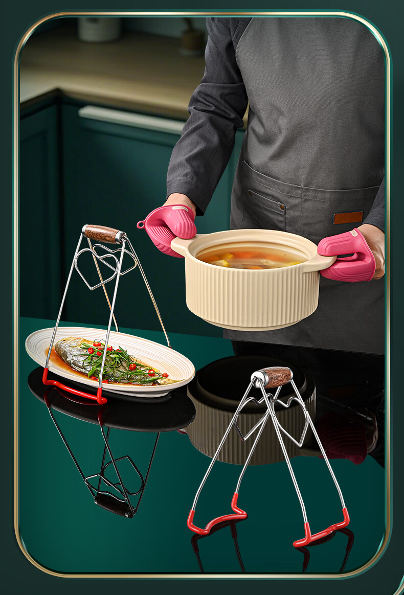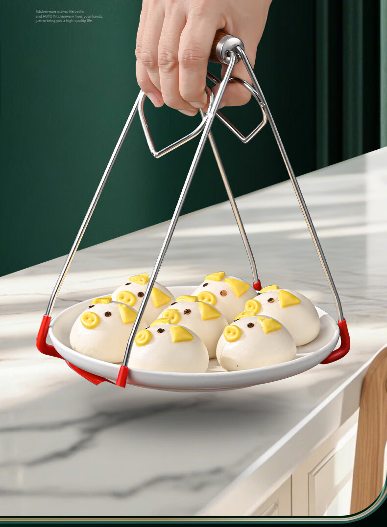 HUYO304 Stainless Steel Anti-scalding Bowl Clamp Kitchen High-end Plate Lifter Steaming Vegetable Clip Food-grade Plate Plate Artifact High-end Model Extra Large Bold 304 Steel