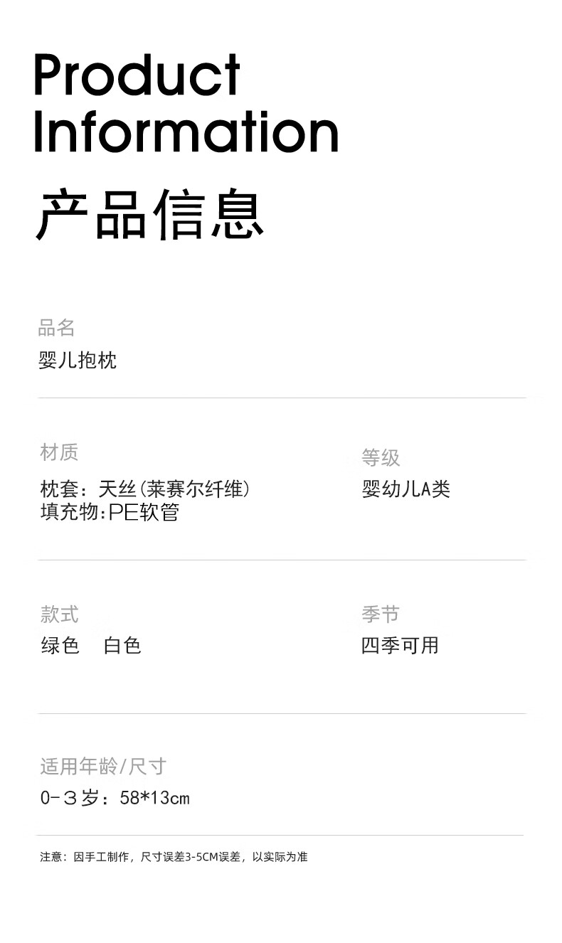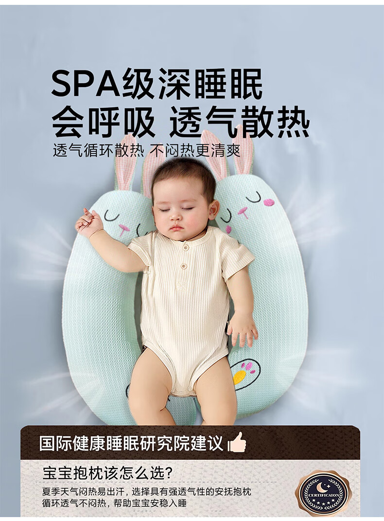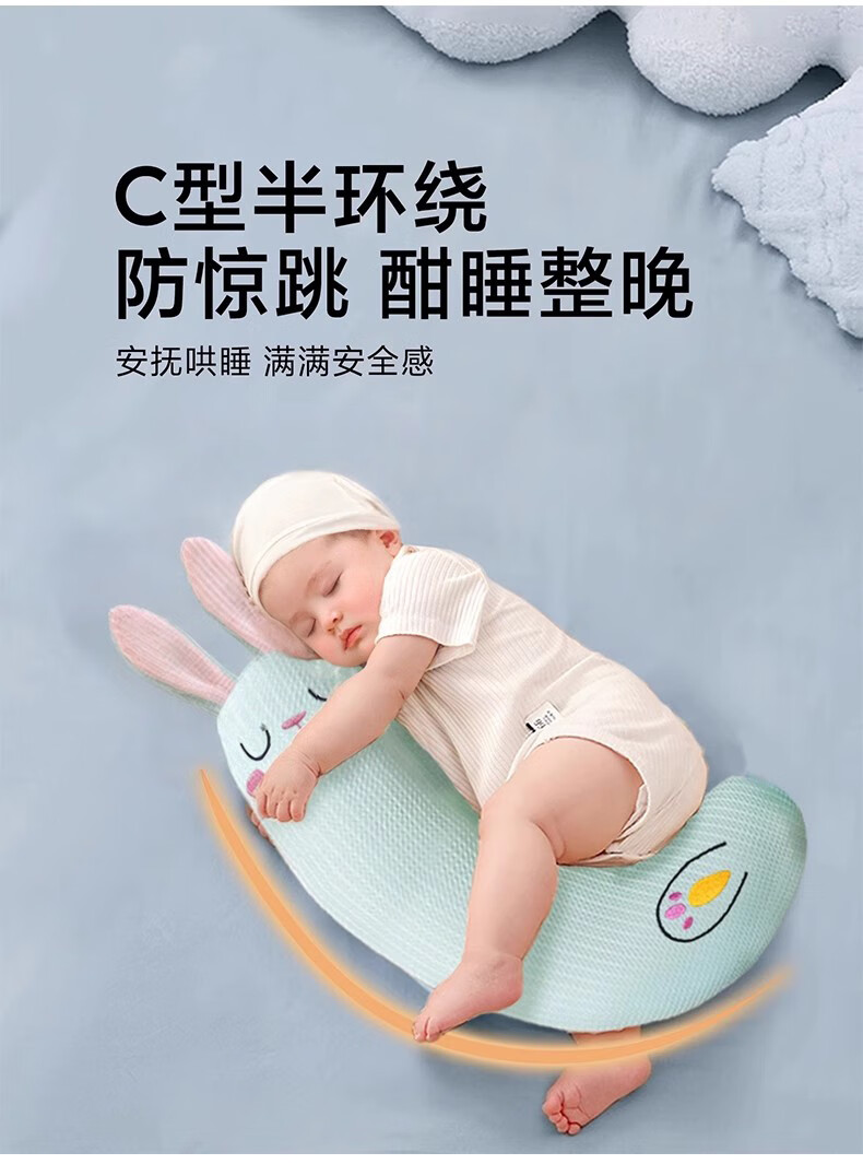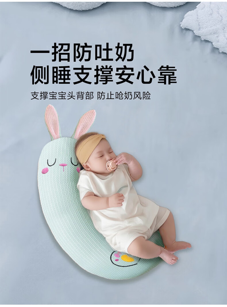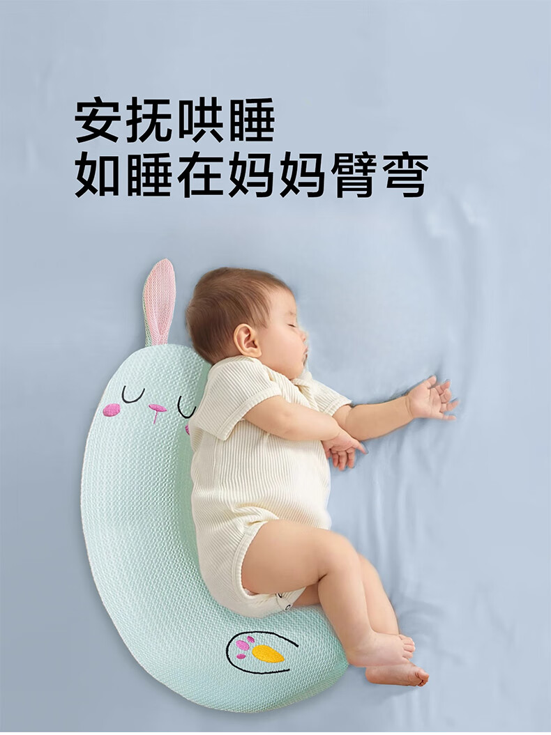 Evebaby (evebaby) baby crescent pillow for sleeping, leg-clamping pillow for baby to hug and sleep on side, newborn backrest pillow, candy pillow, Yuanqi Rabbit Green