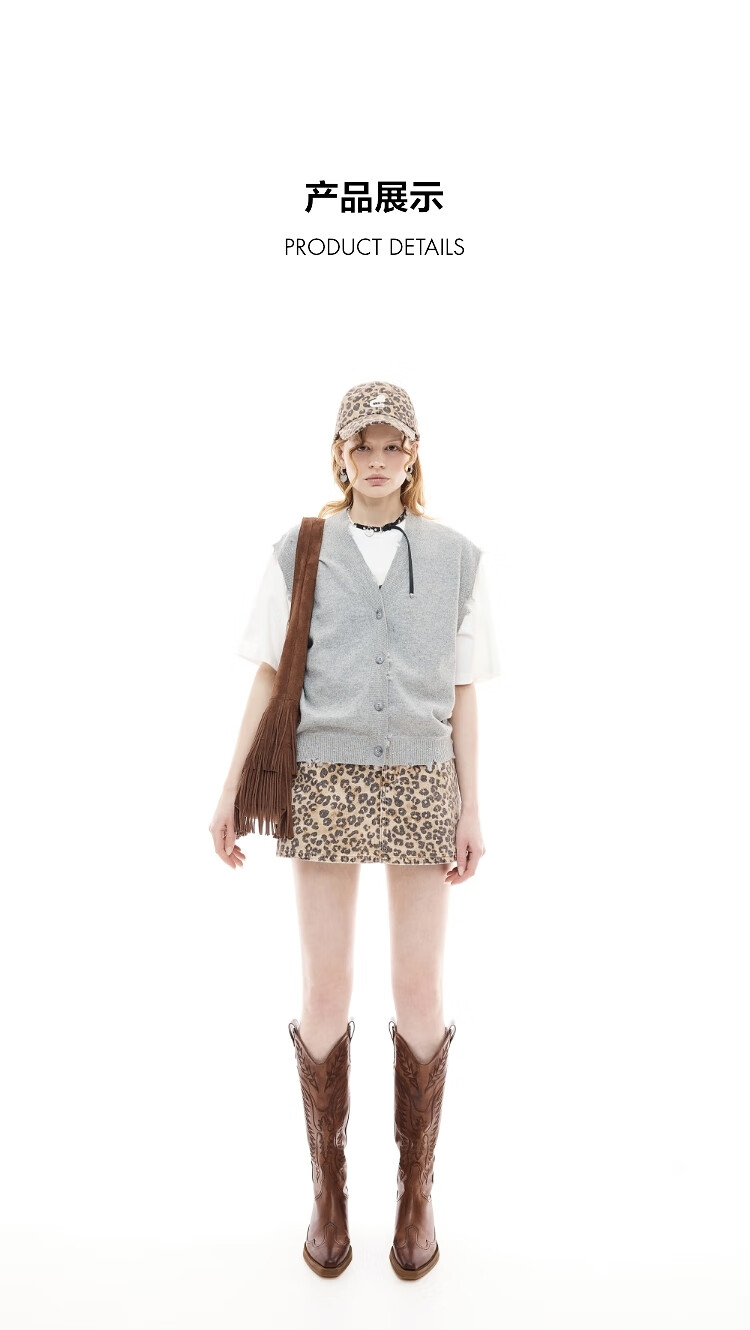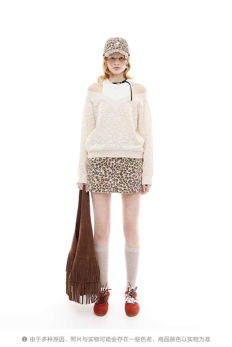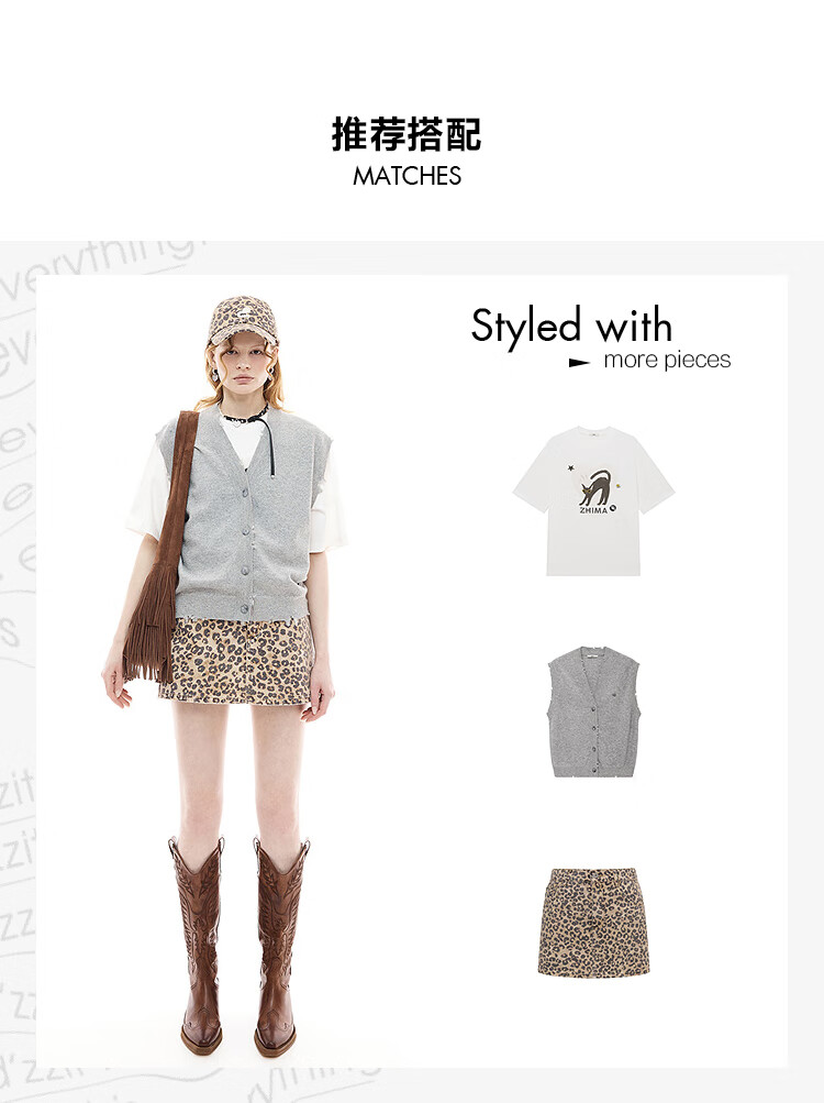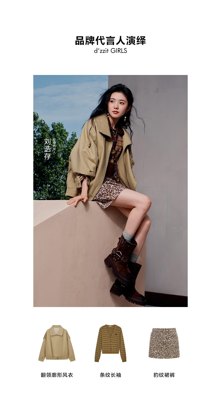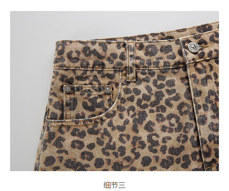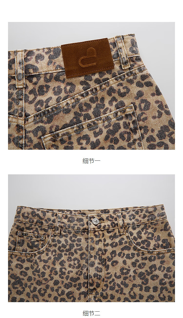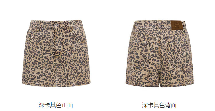 DZZIT plain denim culottes 2025 autumn new retro street leopard print A-line shorts for women 3J3R1086N dark khaki S