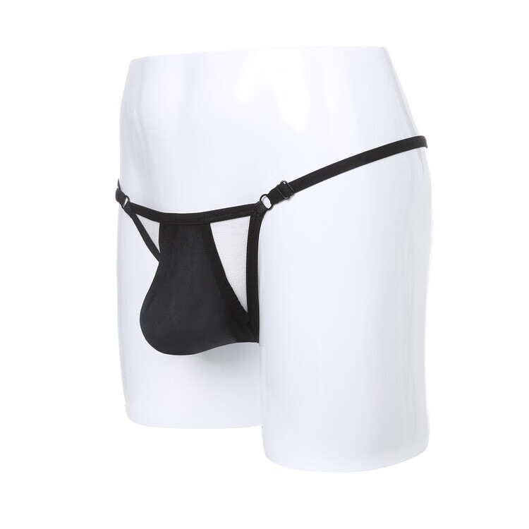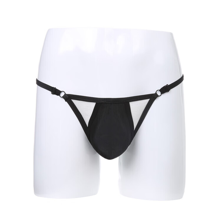 Men's thong sexy underwear men's ice silk breathable no-take-off large bag adjustable fitness muscle male 0 black L /XL (suitable for weight 70-90kg)