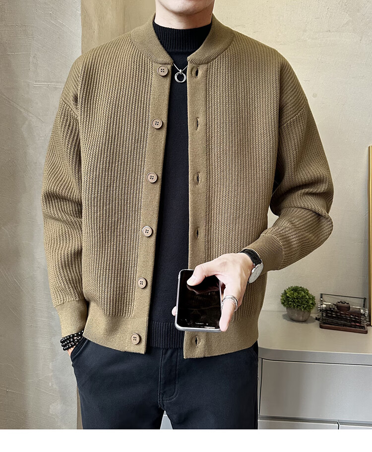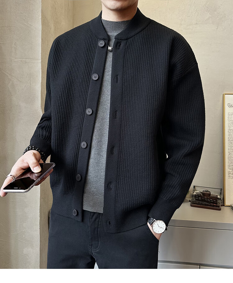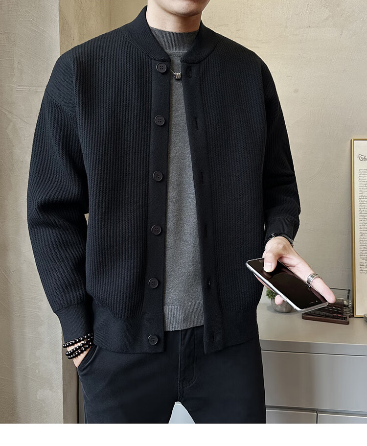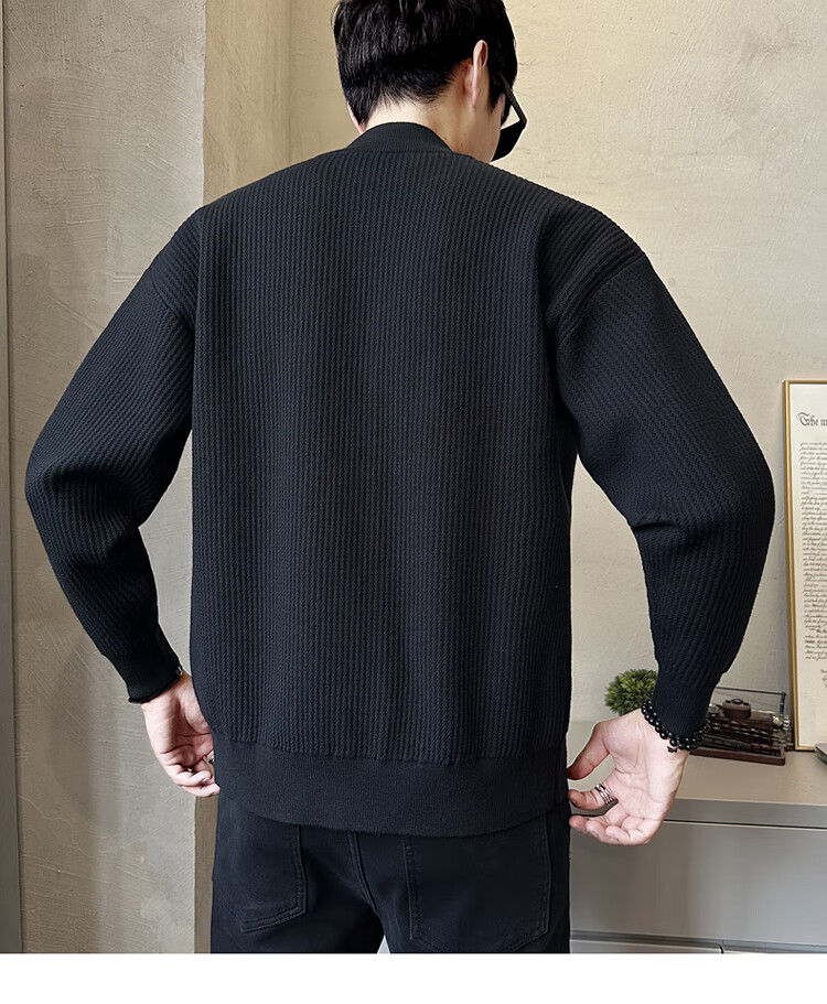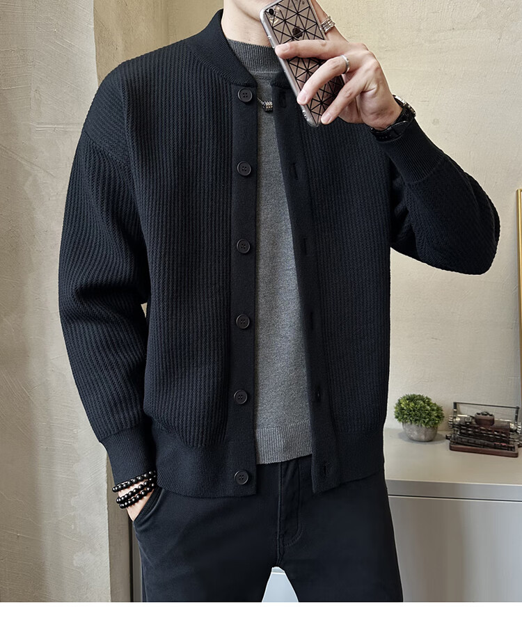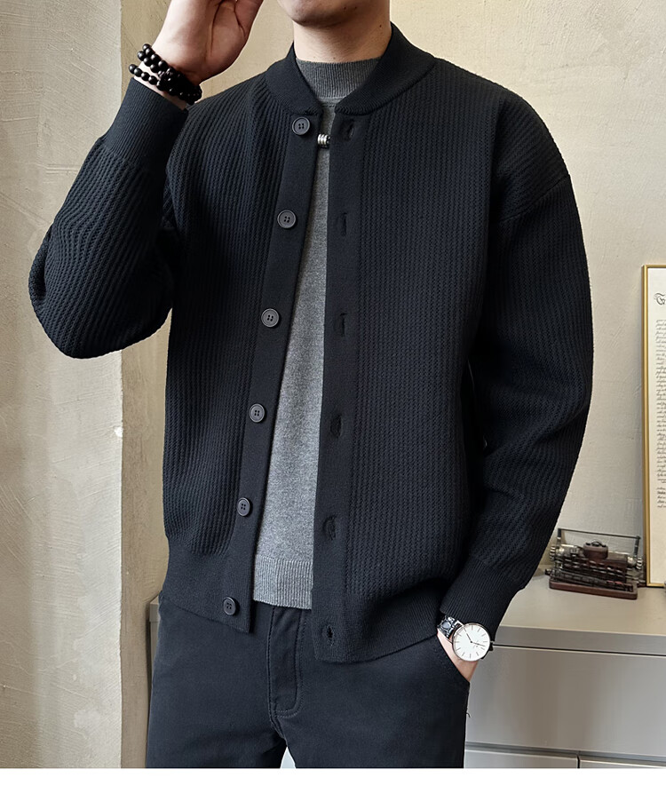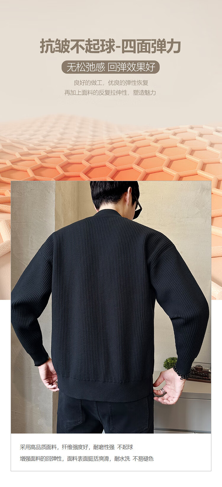 Lomon Wool Knitted Cardigan Jacket Men's Autumn and Winter 2025 New Trendy Brand Casual Loose Baseball Collar Outer Sweater Black 2XL