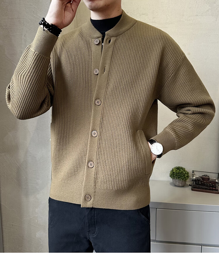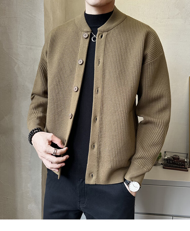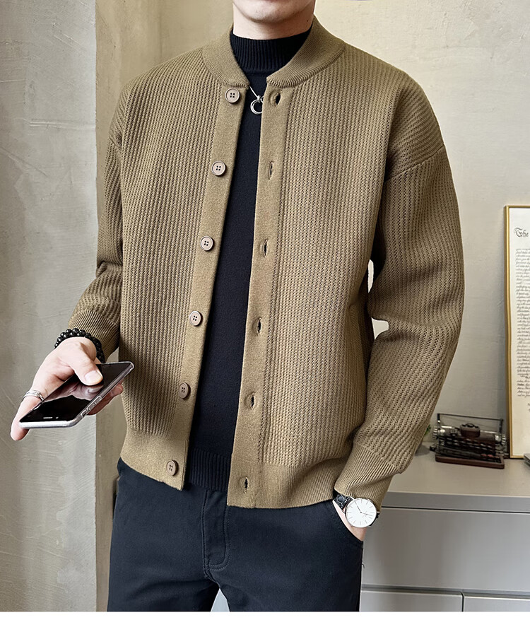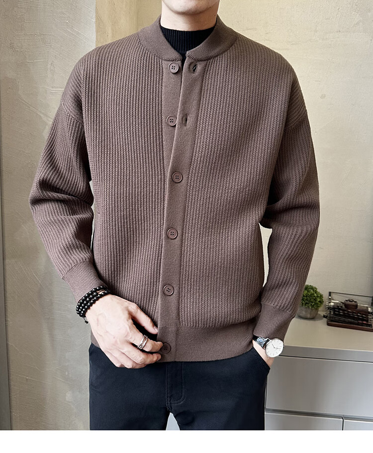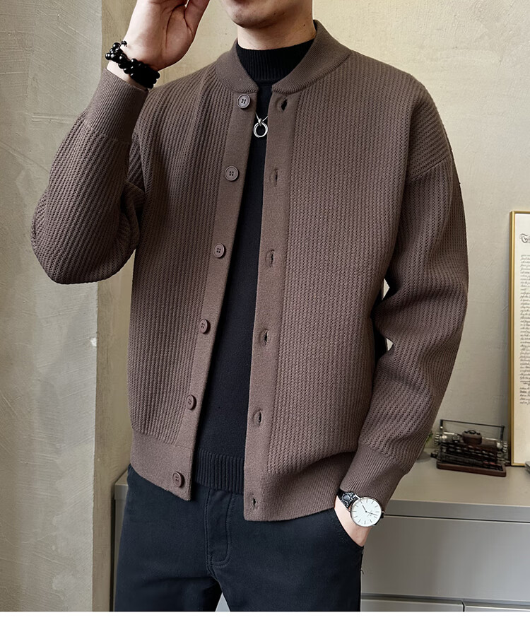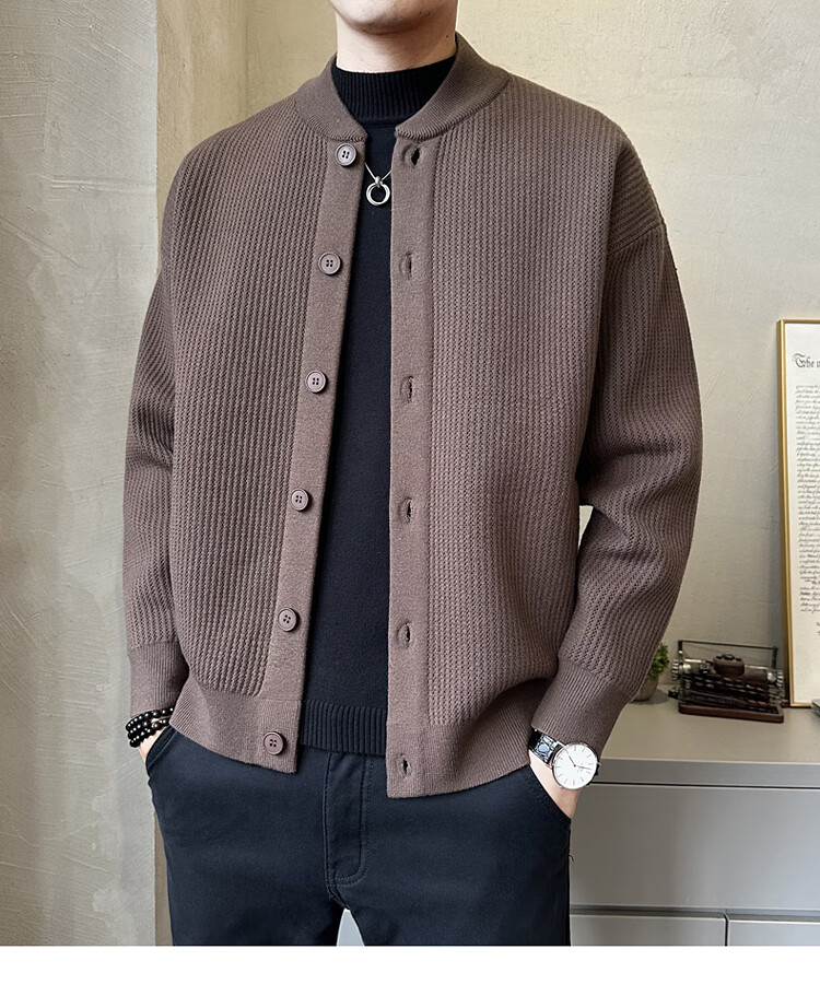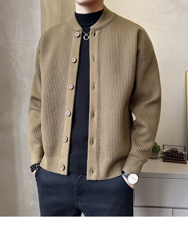 Lomon Wool Knitted Cardigan Jacket Men's Autumn and Winter 2025 New Trendy Brand Casual Loose Baseball Collar Outer Sweater Black 2XL