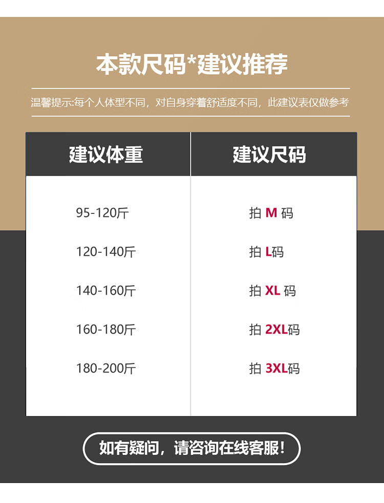 China (cm) 165 / 88-90 170 / 96-98 175 / 108-110 180 / 118-122 185 / 126-130