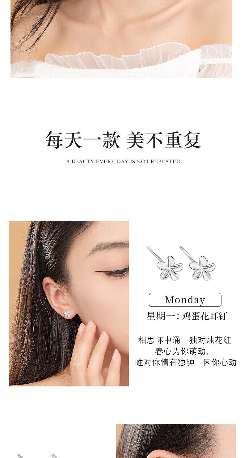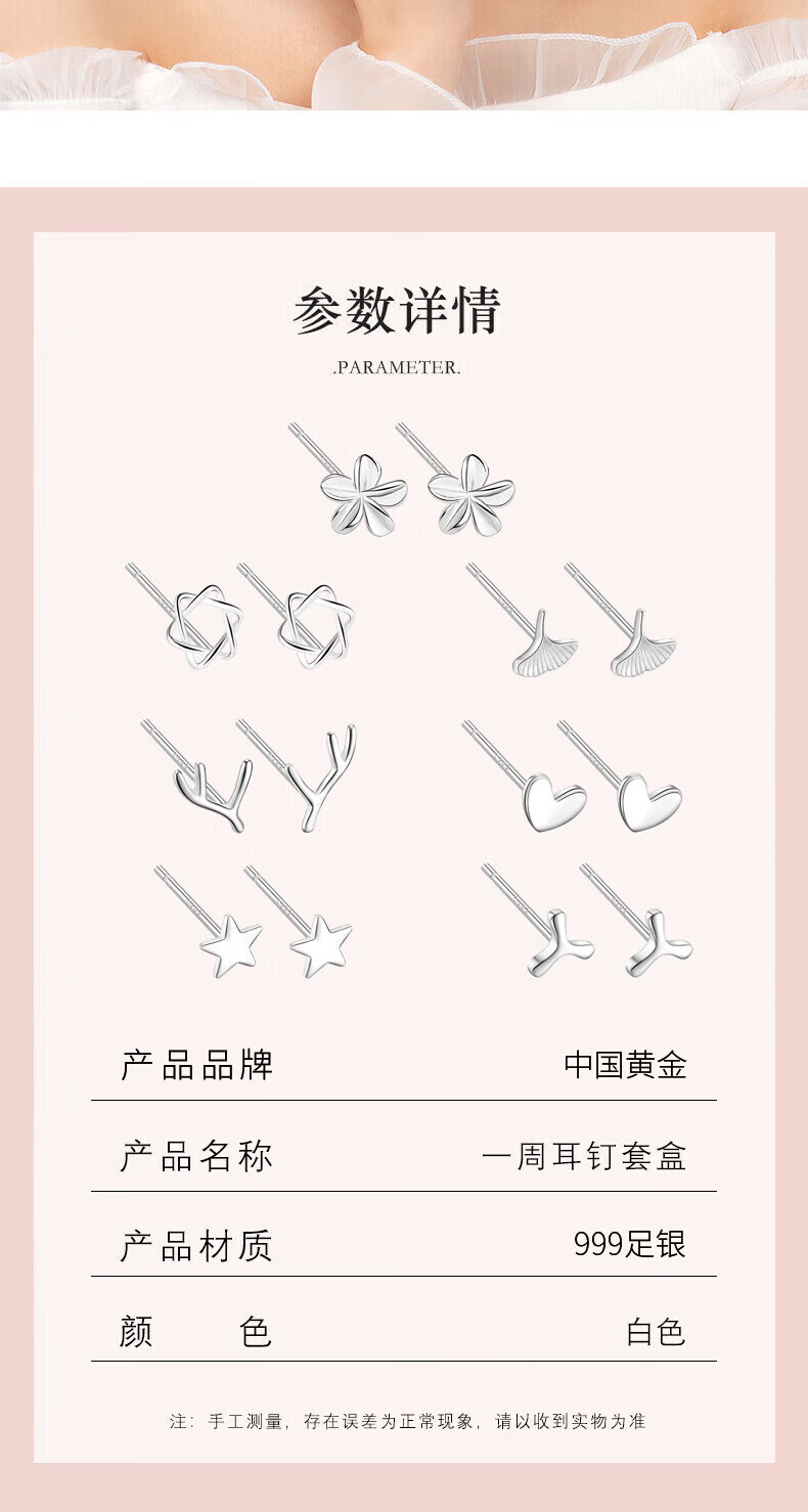 China Gold (CHINA GOLD) one-week earrings women's earrings and earrings set birthday gift for girlfriend's birthday, high-end and practical for wife, pure silver one-week earrings set