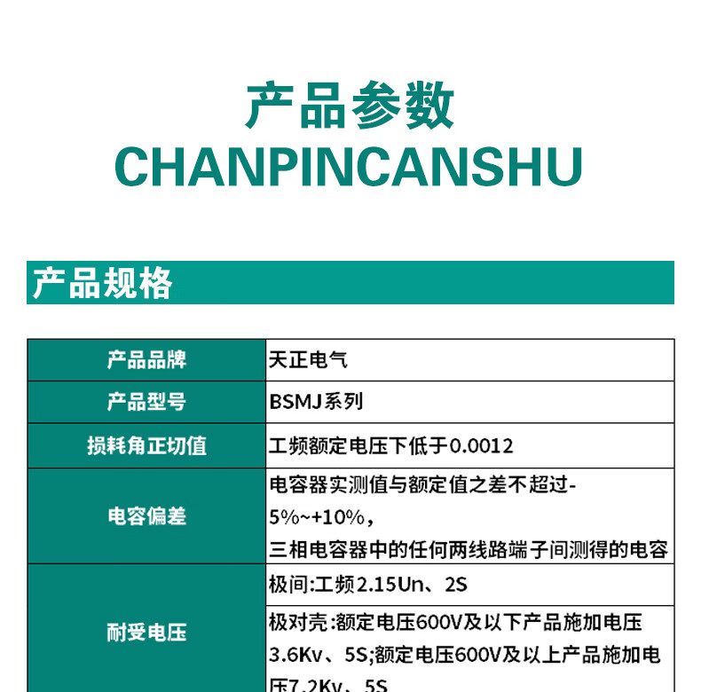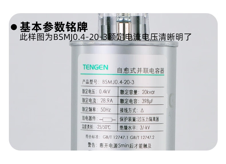 TENGEN Tianzheng self-healing low-voltage parallel power capacitor 450v three-phase reactive power compensation BSMJ0.4-30-3