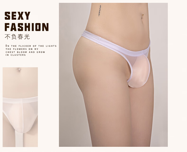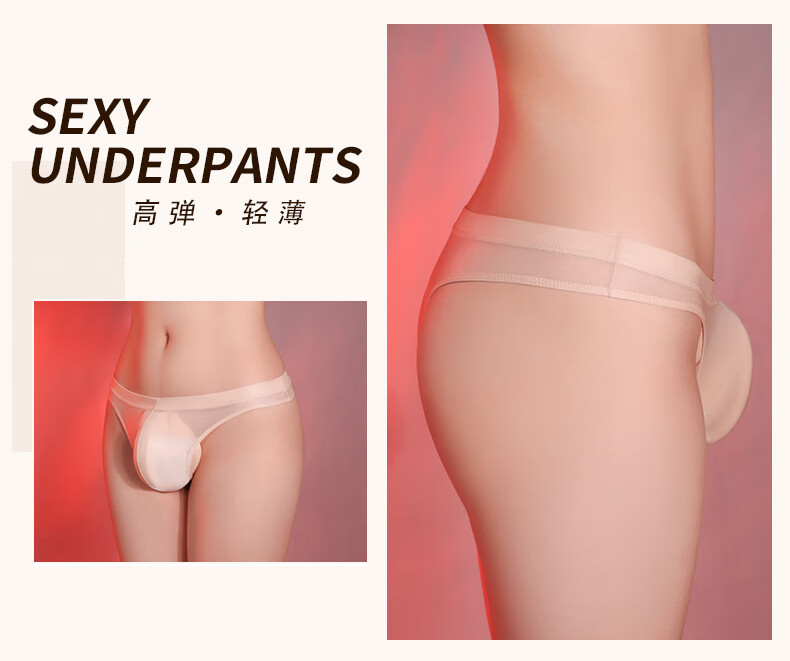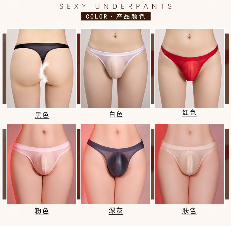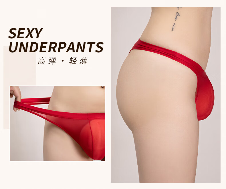 Temptation of Desire Men's Stretch Triangle Thong Tight Transparent Breathable Ultra-Thin Underwear Large Size Black L Large Size (130-160Jin Jin equals 0.5kg)