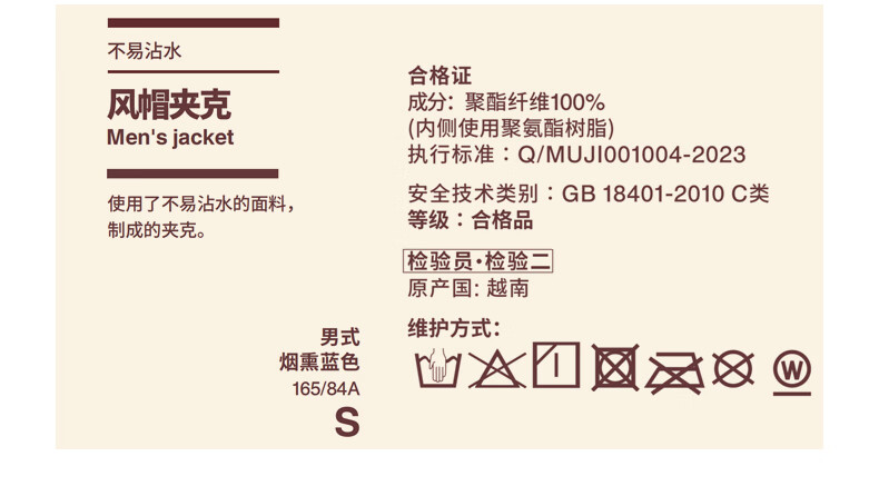 MUJI men's waterproof hooded jacket men's long-sleeved jacket autumn 25 men's AD0X5A5A ivory M (170/92A)