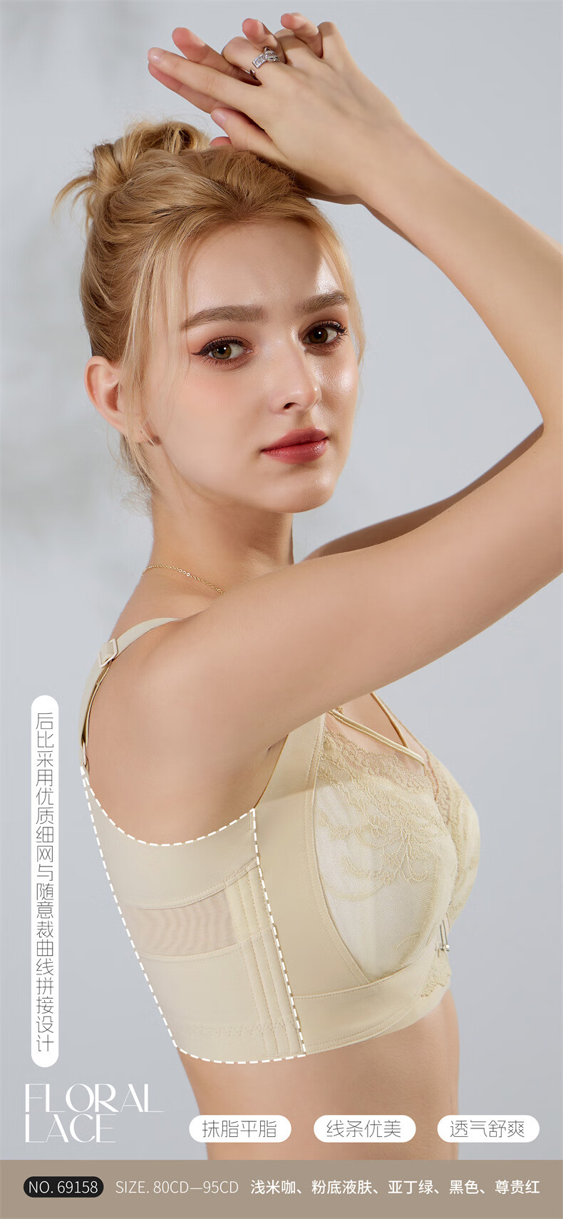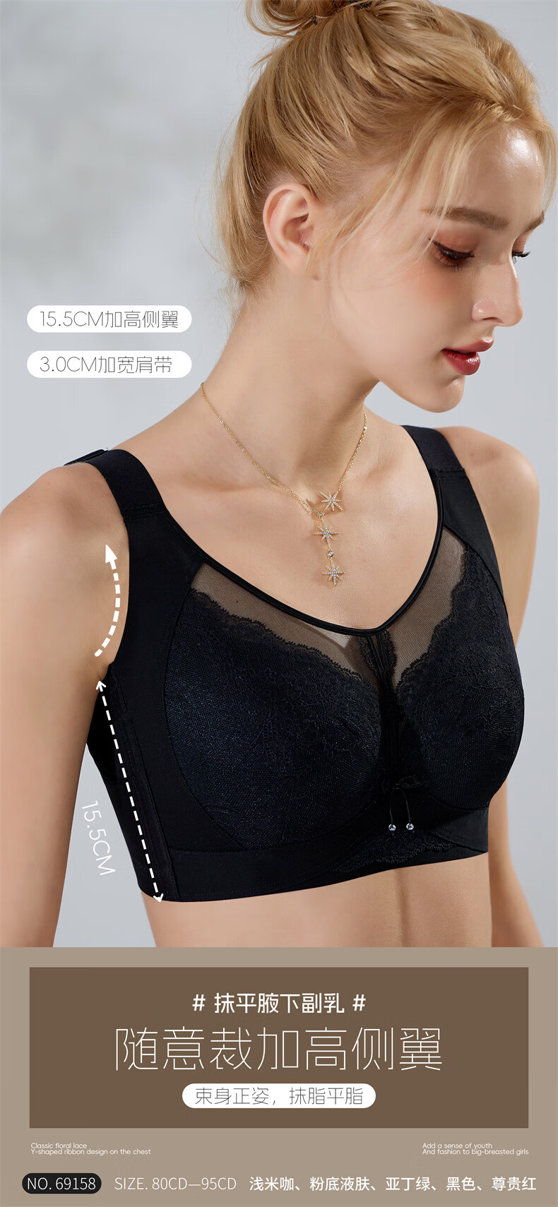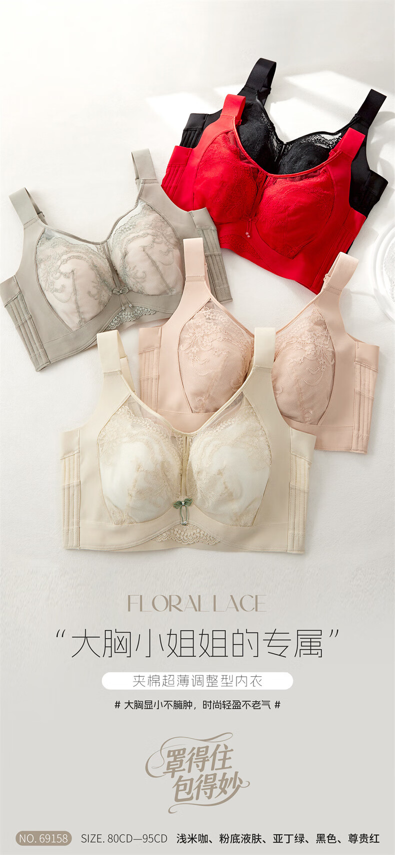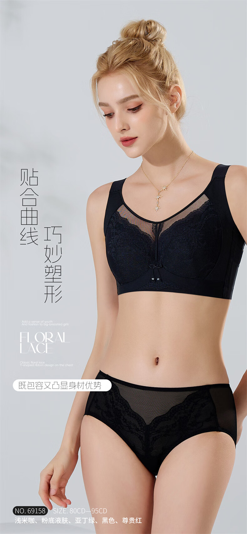 Other women's thin underwear with large breasts showing small size, full cup push-up, breathable, adjustable, side breasts, large size lace tube top bra, Aden Green 80/36CD