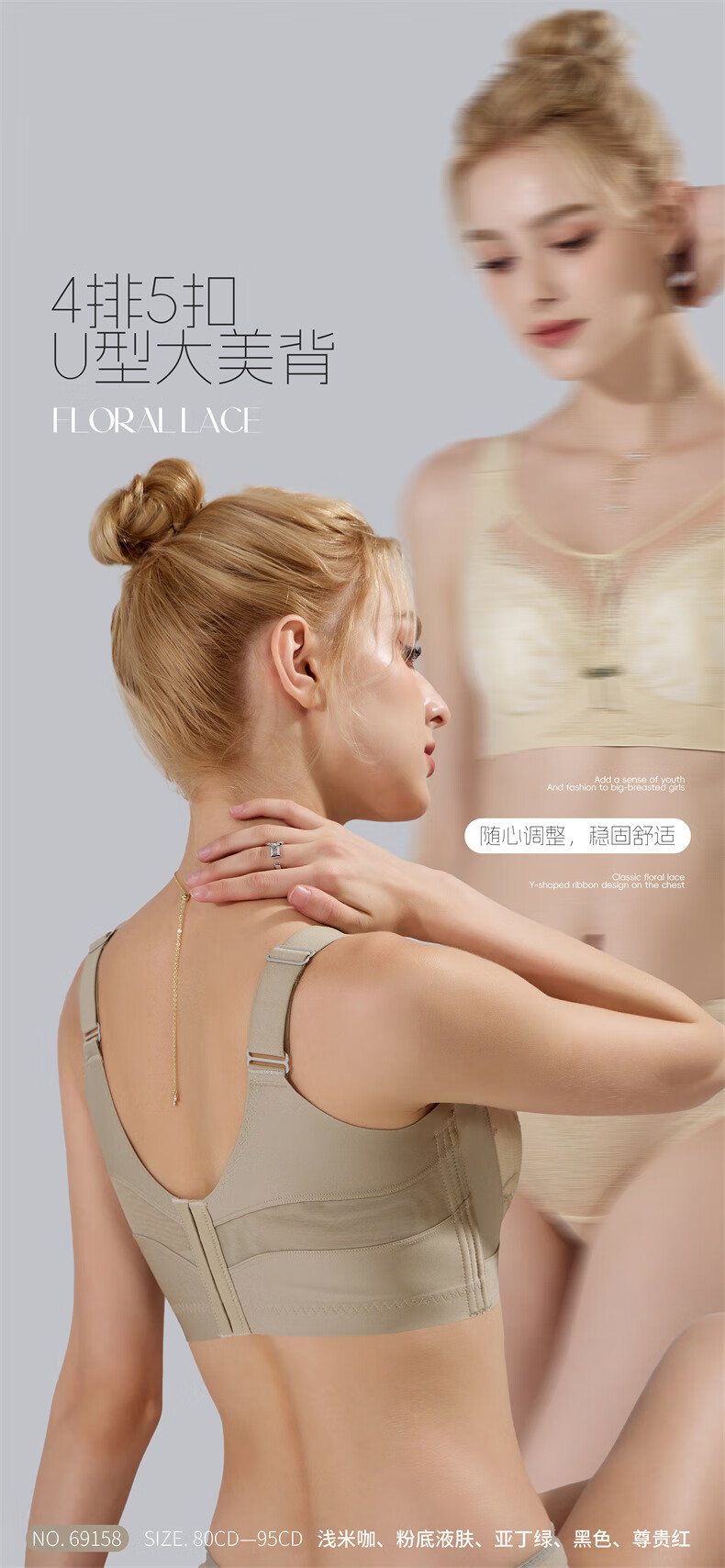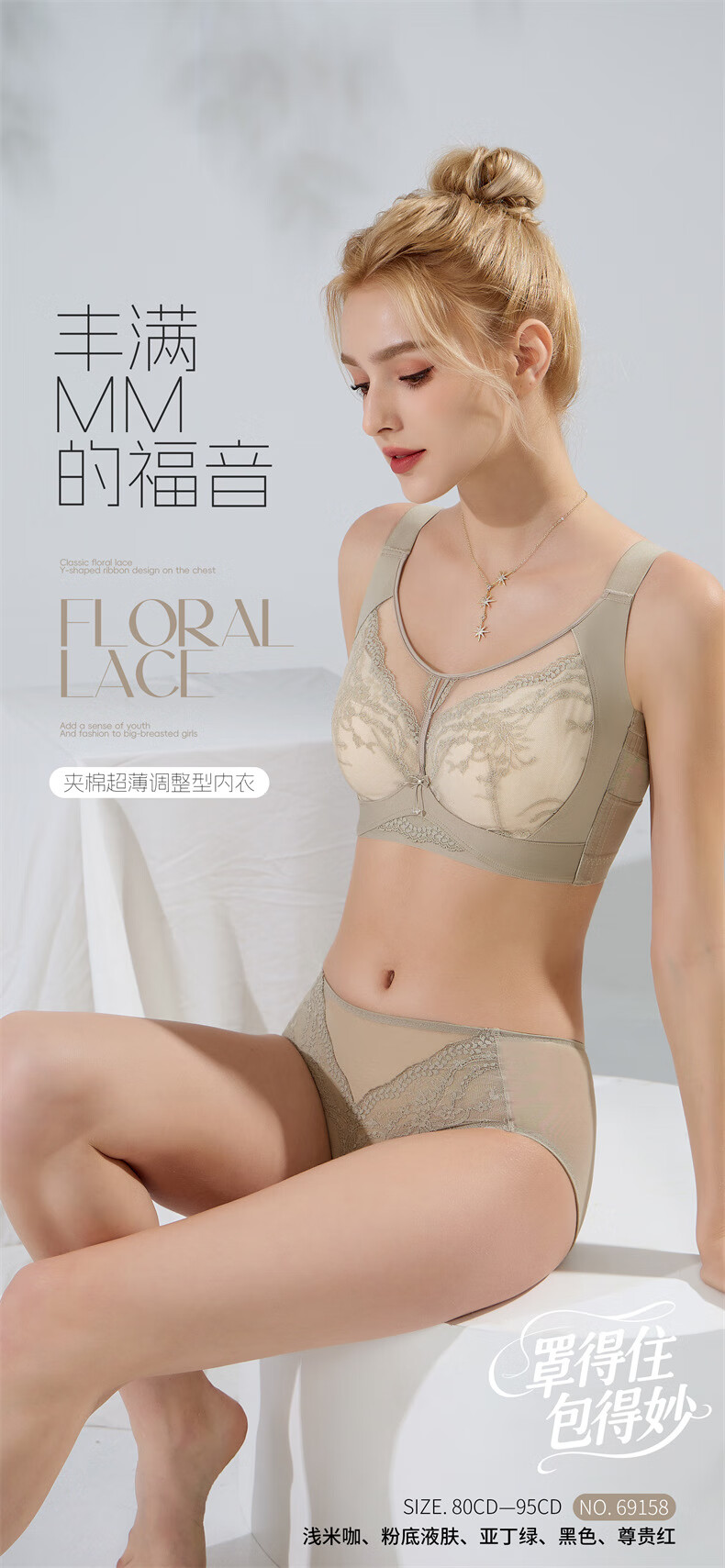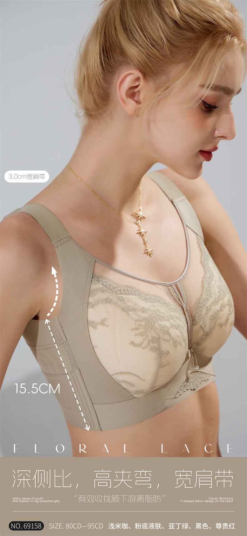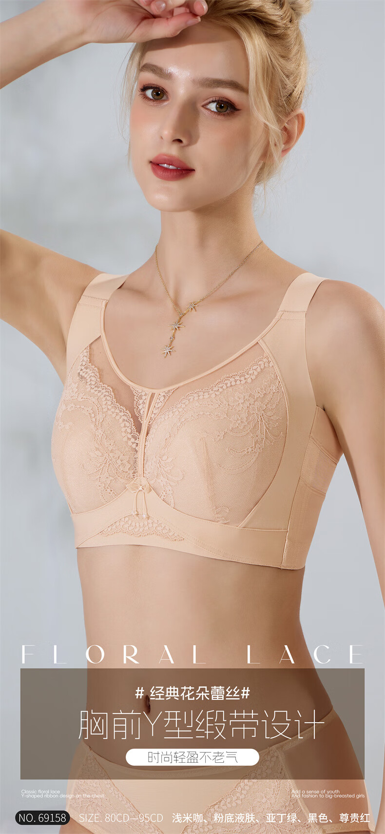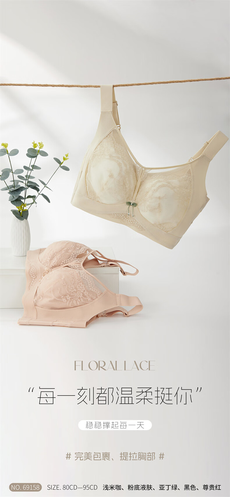 Other women's thin underwear with large breasts showing small size, full cup push-up, breathable, adjustable, side breasts, large size lace tube top bra, Aden Green 80/36CD