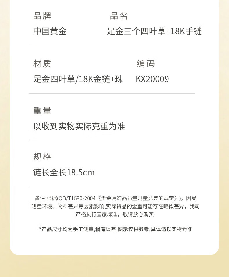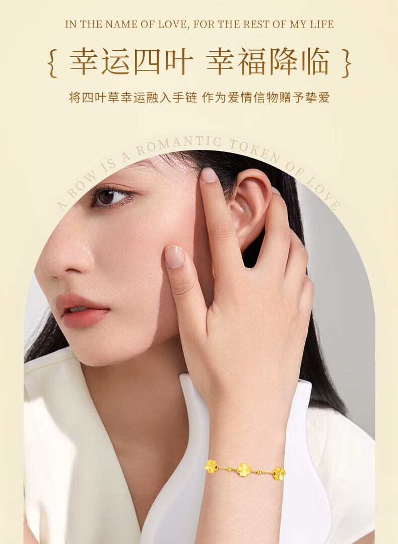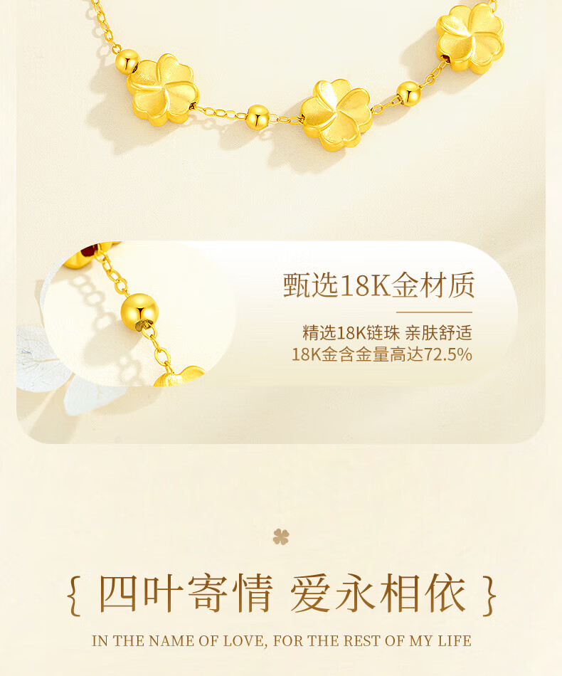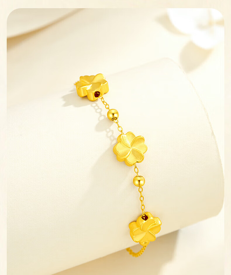 China Gold (CHINA GOLD) Four-leaf clover gold bracelet women's pure gold transfer bead bracelet birthday gift for girlfriend and wife practical wedding anniversary Jingsuda-Pure gold three-leaf clover + 18K gold chain
