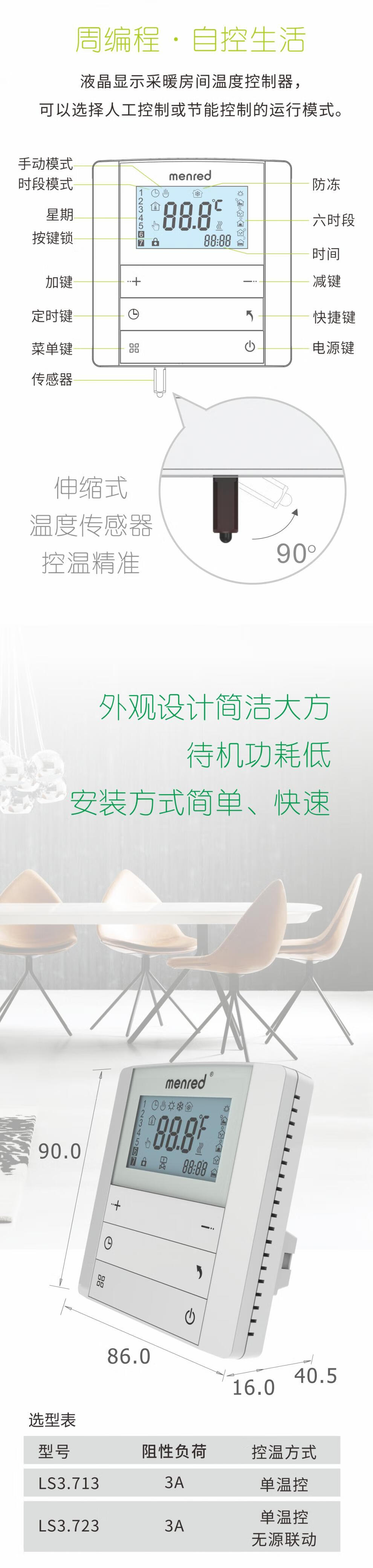 Manred LS3 water floor heating thermostat LS3.713 water heating thermostat