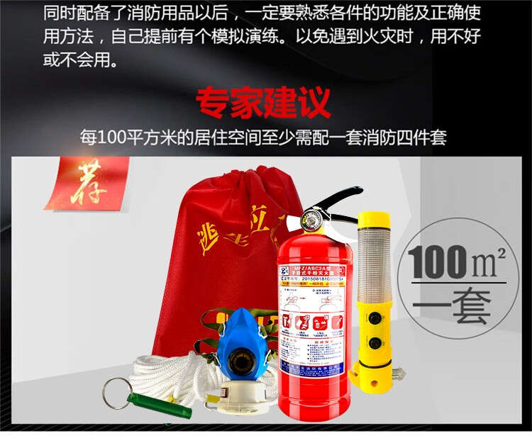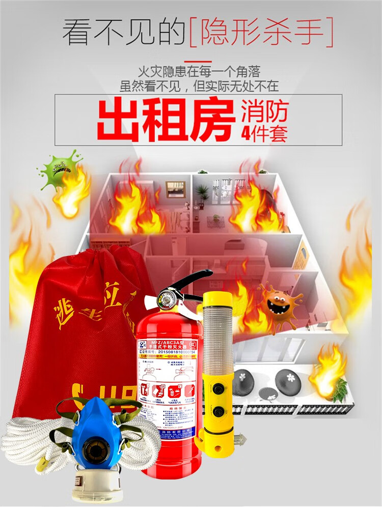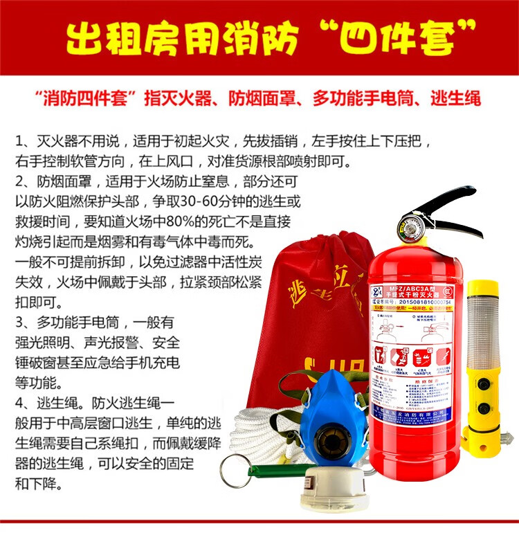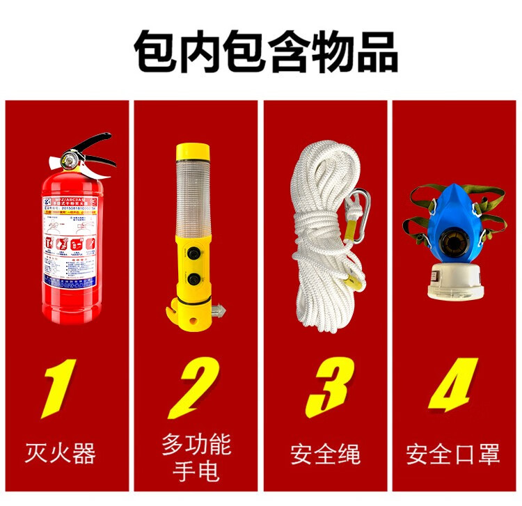 Firefighting four-piece rental house home hotel hotel home fire emergency kit fire extinguisher fire escape equipment smoke mask package No. 2
