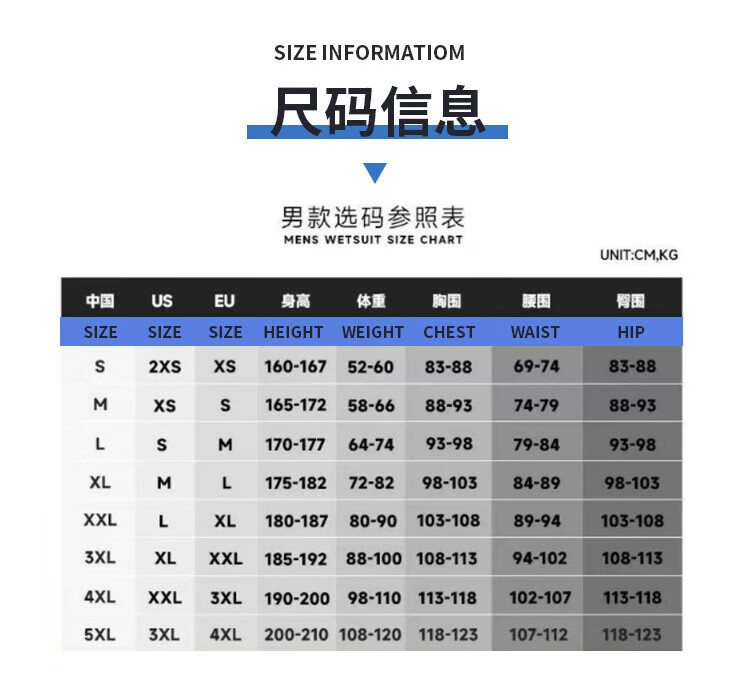 China (cm) 160-165/84-86 165-170 / 88-90 167-172 / 92-96 168-173 / 98-102 170-176 / 106-110