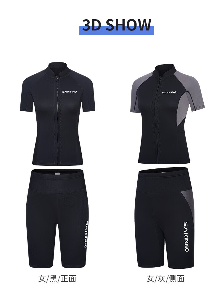He Jiagong men's and women's diving suits couple split diving suit warm snorkeling surfing suit short-sleeved shorts diving top swimsuit gray - shorts S