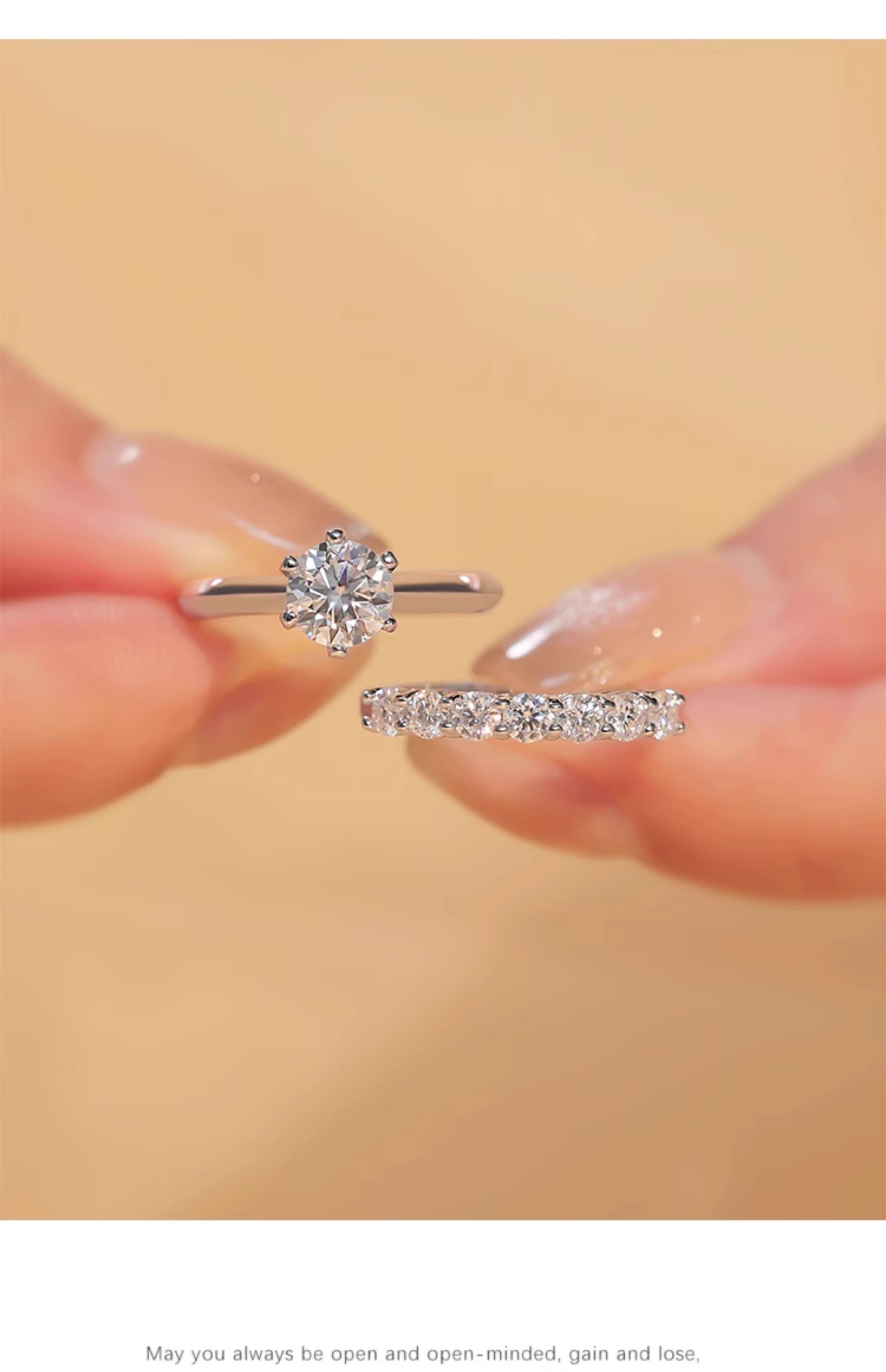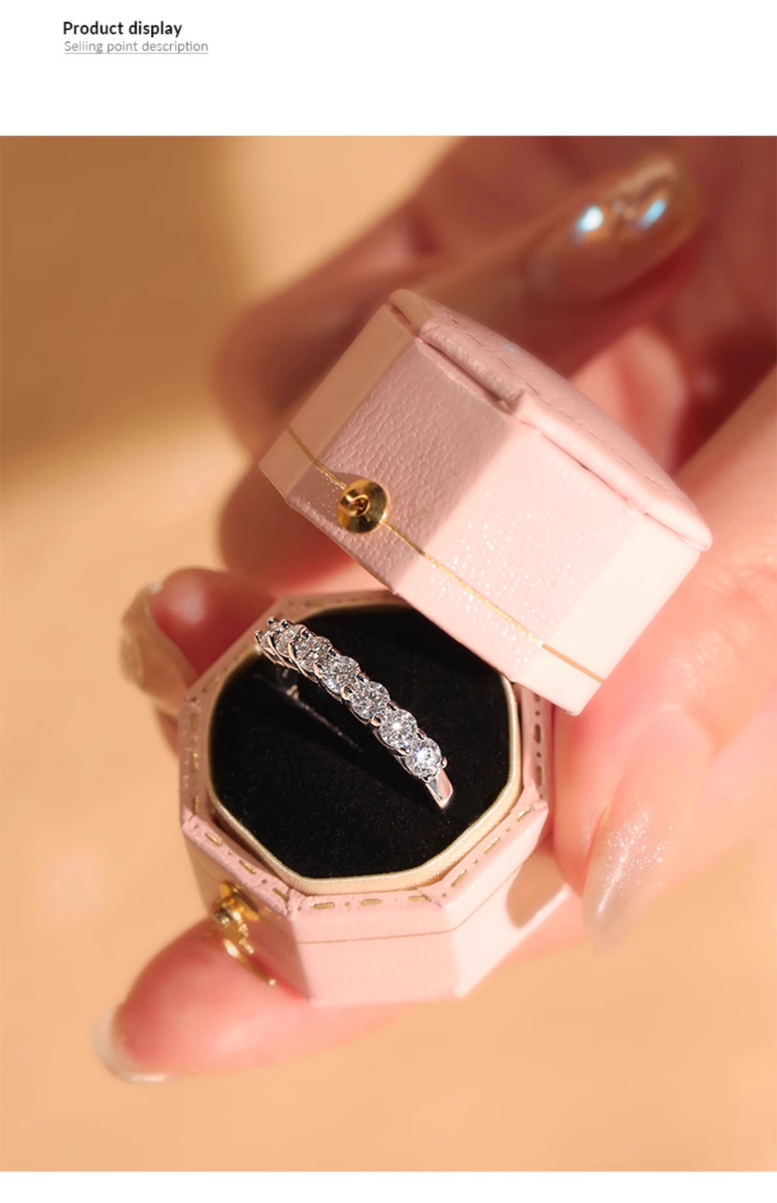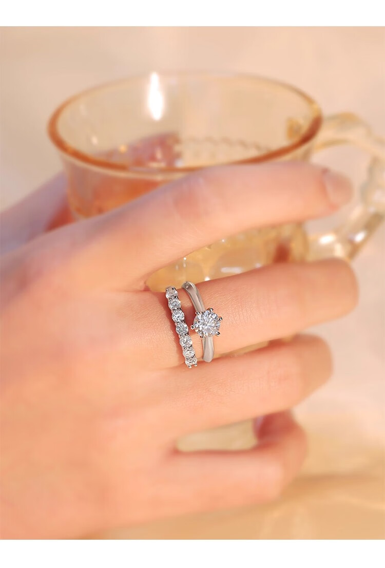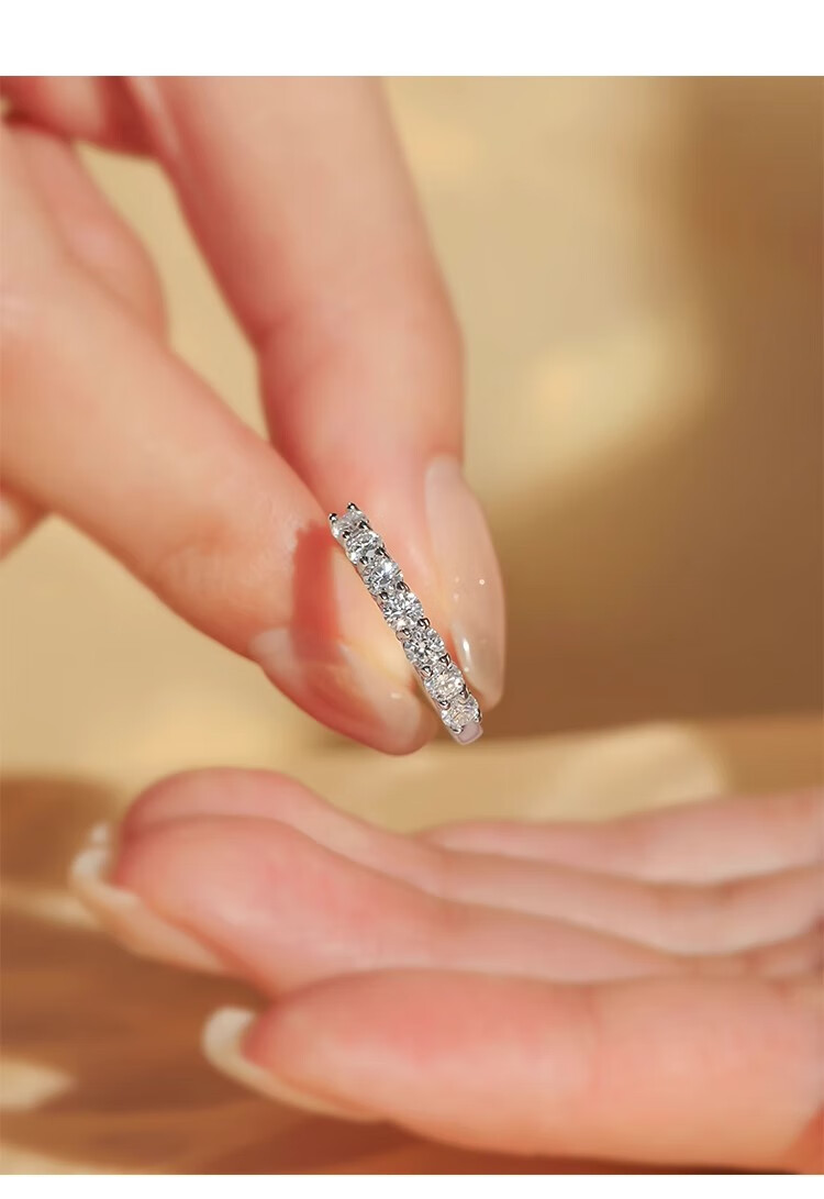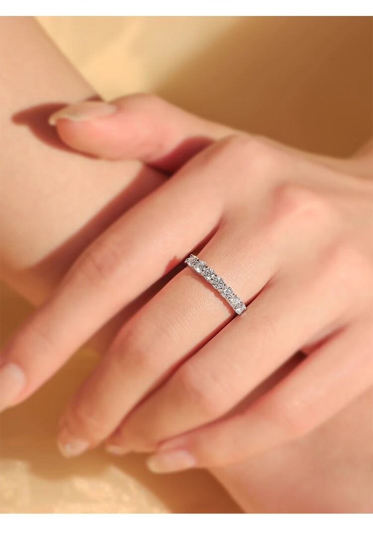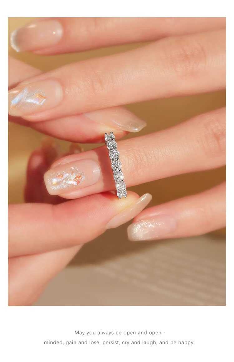 Moissanite row of diamonds for women, fashionable and personalized stacking, versatile simulated diamond tail ring, sterling silver, platinum-plated pt950 ring, light luxury model - classic single row of diamonds - rose gift box, default live mouth, closed mouth, note ring number