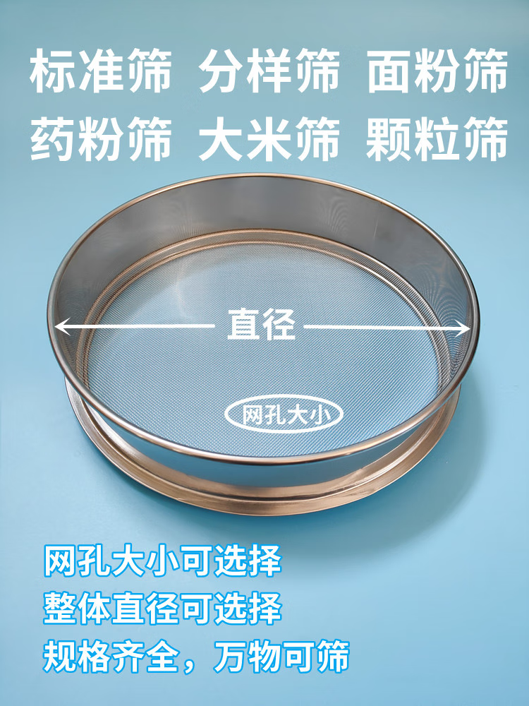 Fantasy sieve flour sieve rice sieve stainless steel sieve household round rice cake sieve ultra-fine Chinese medicine powder sieve filter diameter 25 cm 30 mesh corn flour miscellaneous grains powder pepper