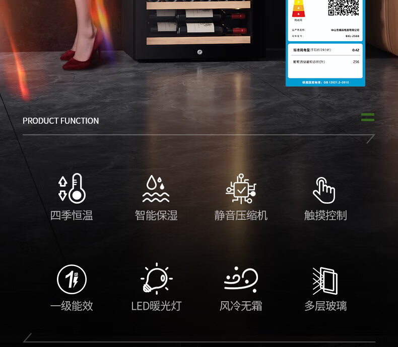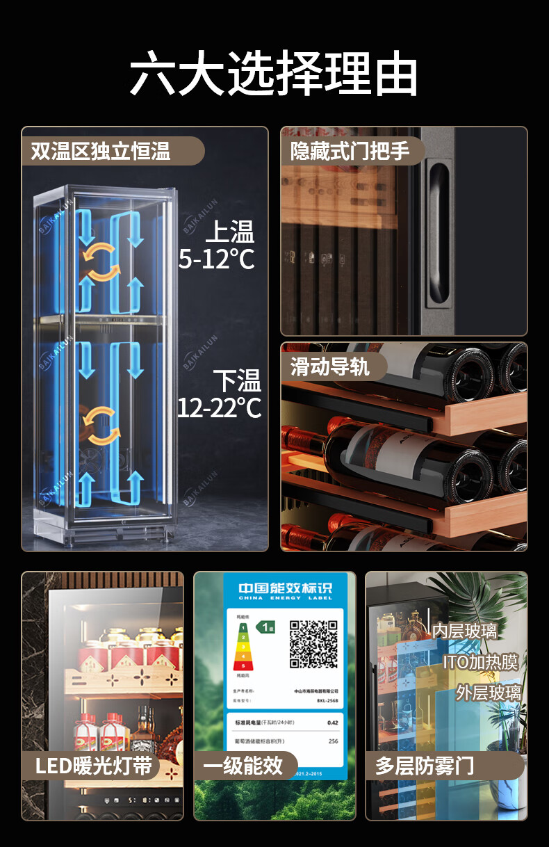 Bai Kailun red wine cabinet constant temperature wine cabinet air-cooled constant temperature moisturizing wine refrigerated storage display cabinet multi-functional household refrigerator sake beer cold bar foreign wine tea cabinet frequency conversion丨dual temperature丨multi-function model丨 256L thin model