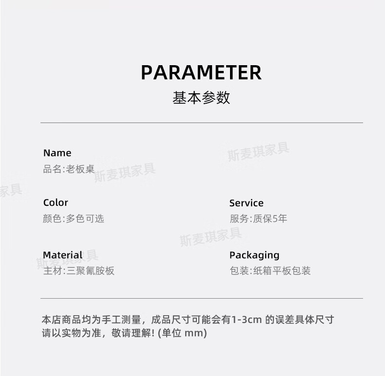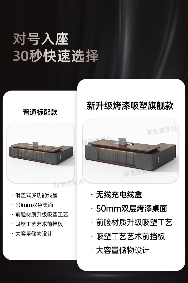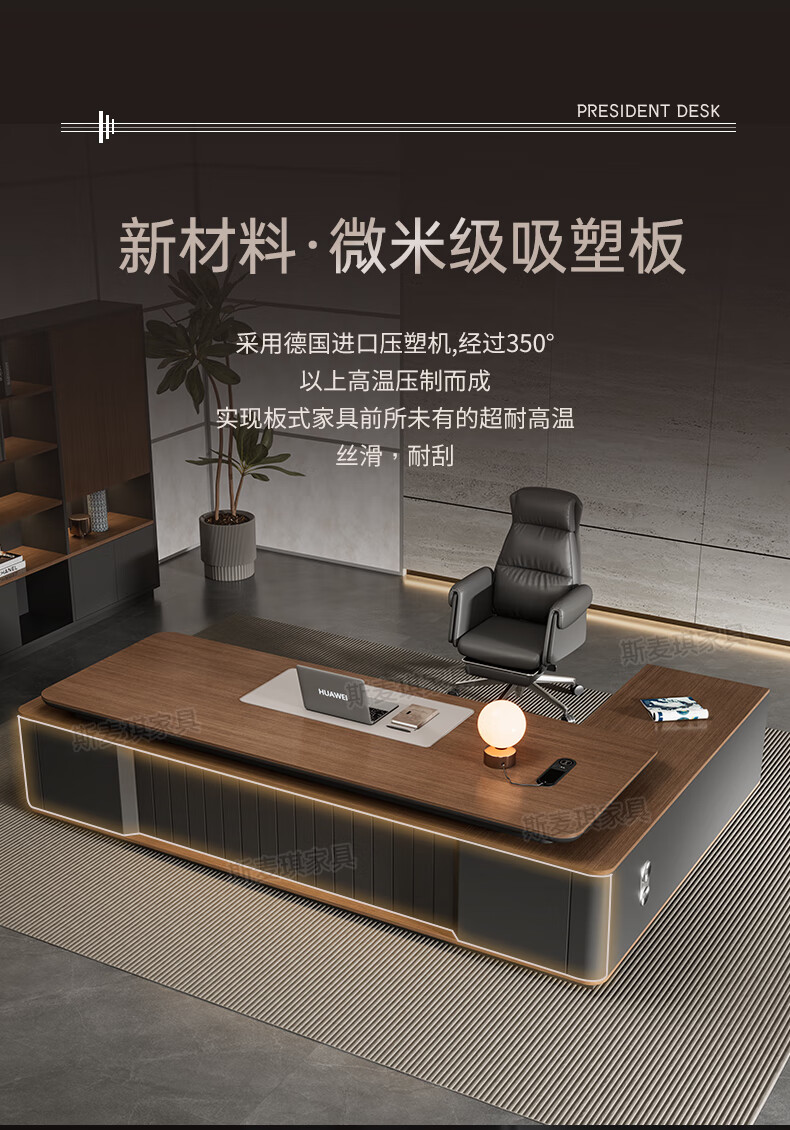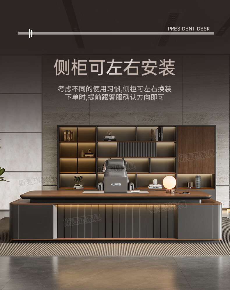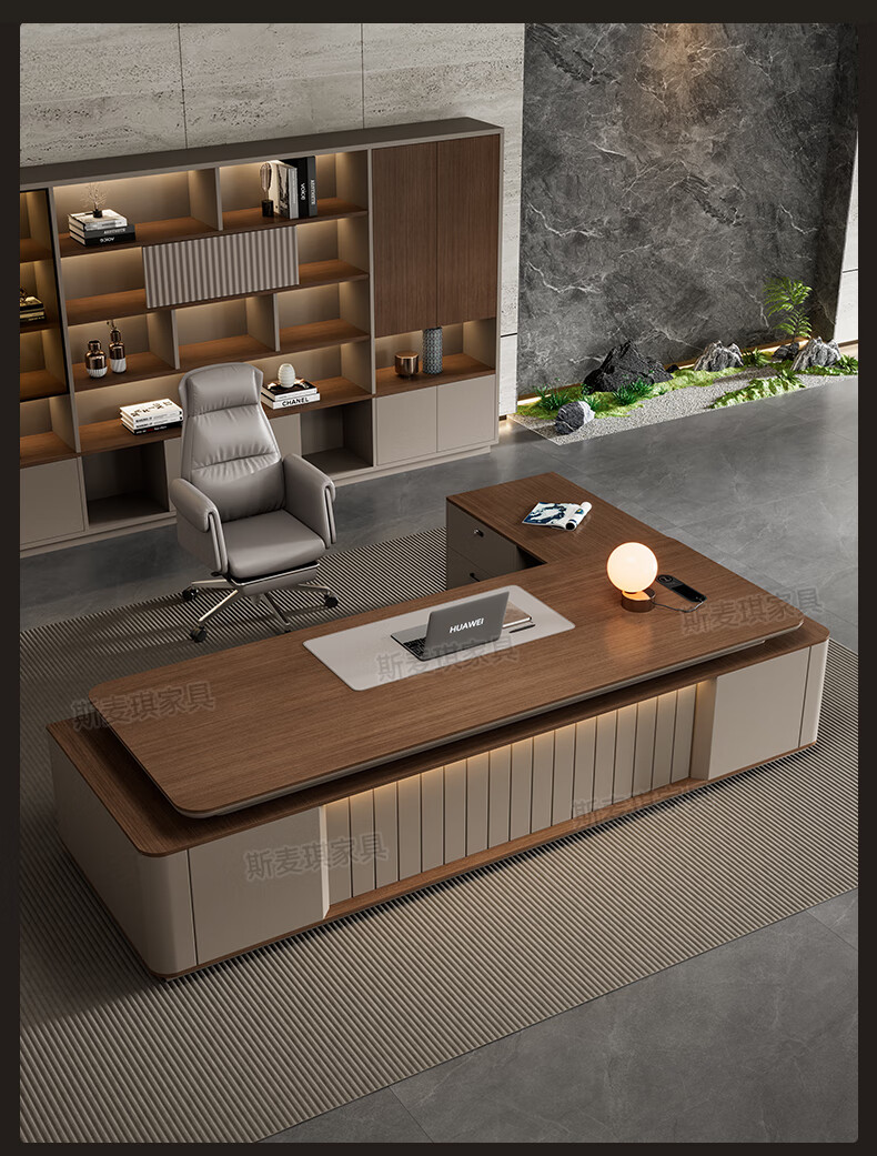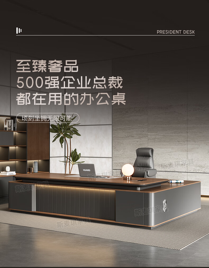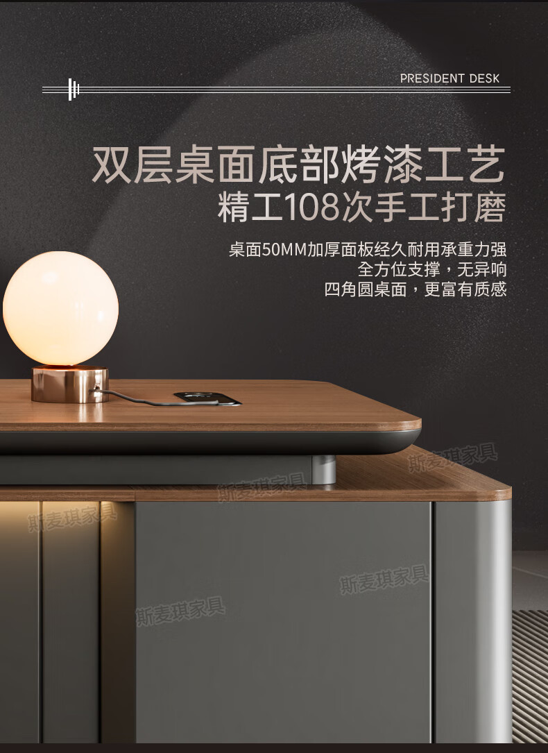 Smacki Light Luxury Boss Desk High-end Modern Simple Painted Desk President Desk Office Manager Desk and Chair Combination 2.0 Meter Double Cabinet Boss Desk Painted Desktop