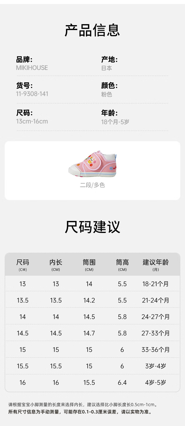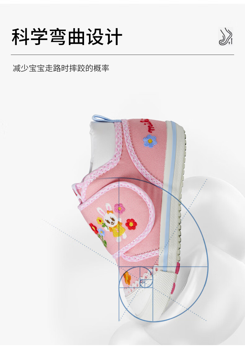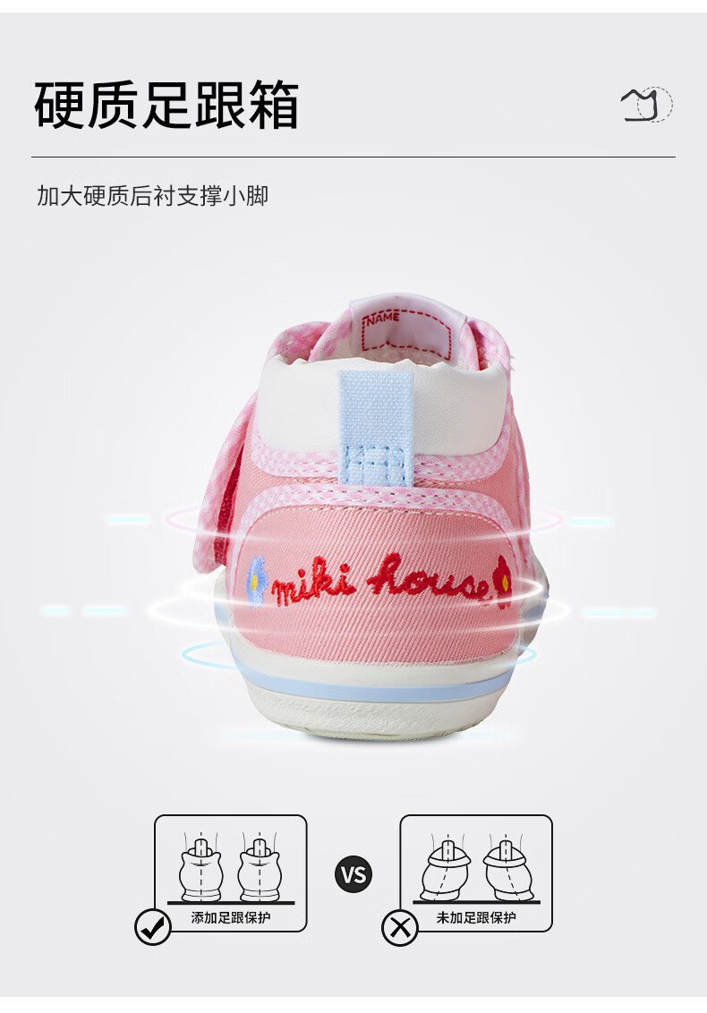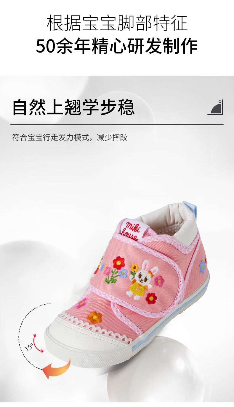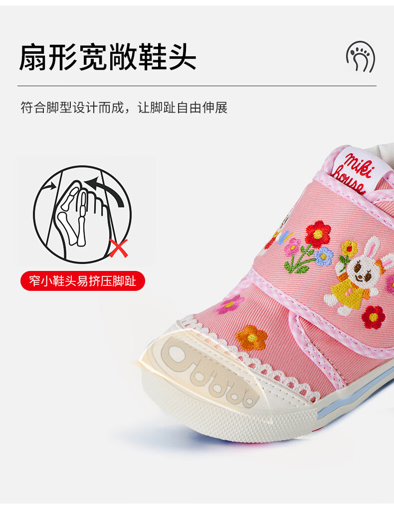 MIKIHOUSE Japanese-made children's toddler shoes, girls' toe-toe baby shoes, embroidered cartoon non-slip wear-resistant infant and toddler indoor shoes, pink 15 (suitable for inner length 14.5cm)
