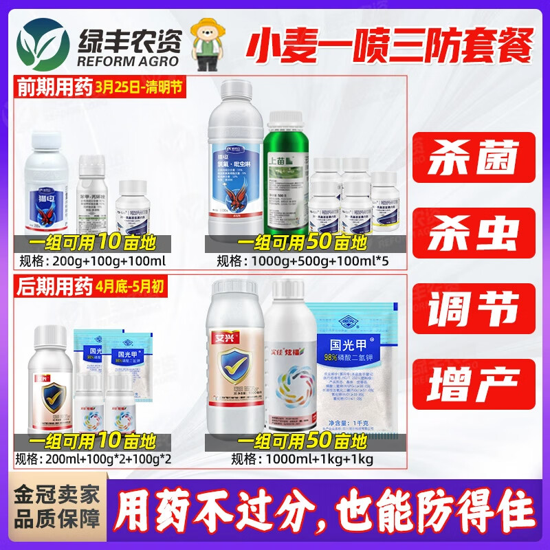 Wheat one-spray three-prevention package, aphid insecticide, Gibberellus, powdery mildew rust fungicide, adjustment and yield-increasing foliar fertilizer 2.3kg--one spray three-prevention dosage for the first 10 acres