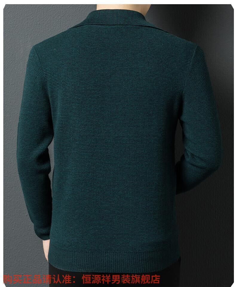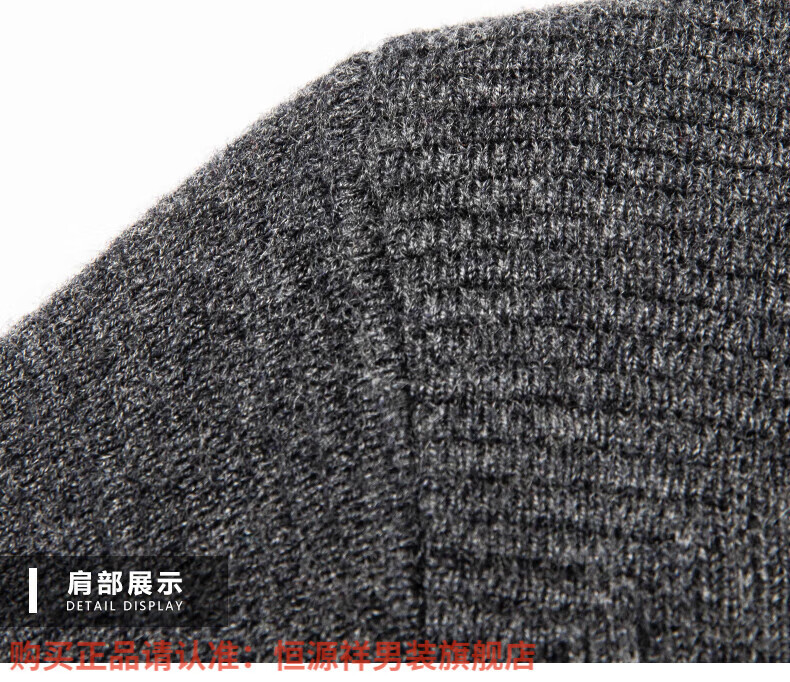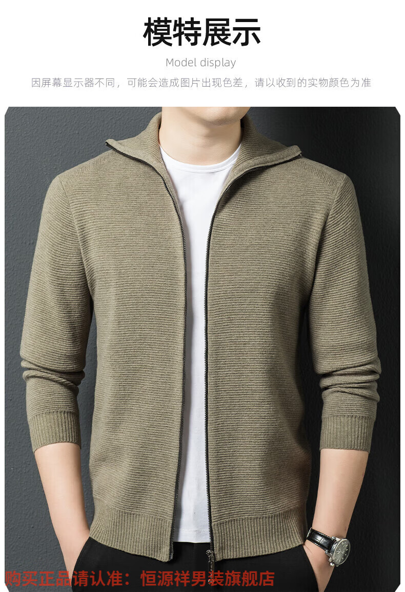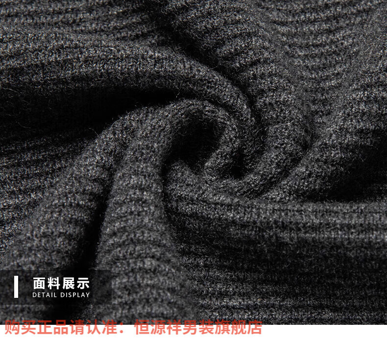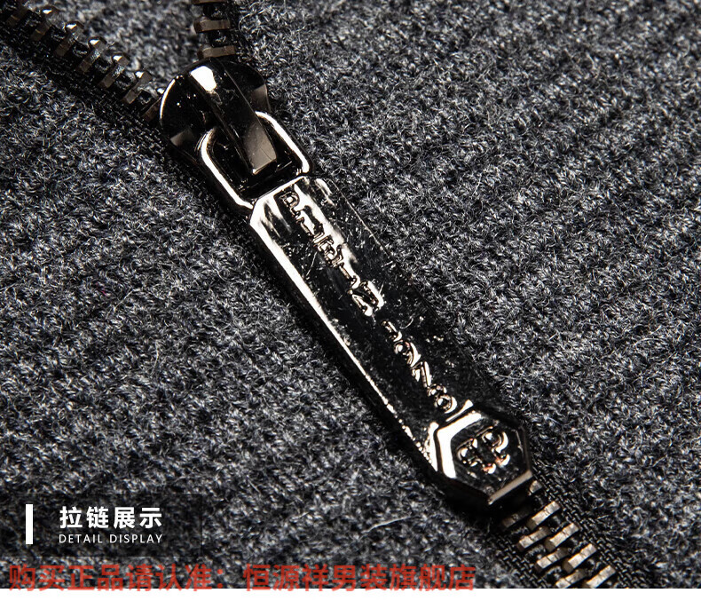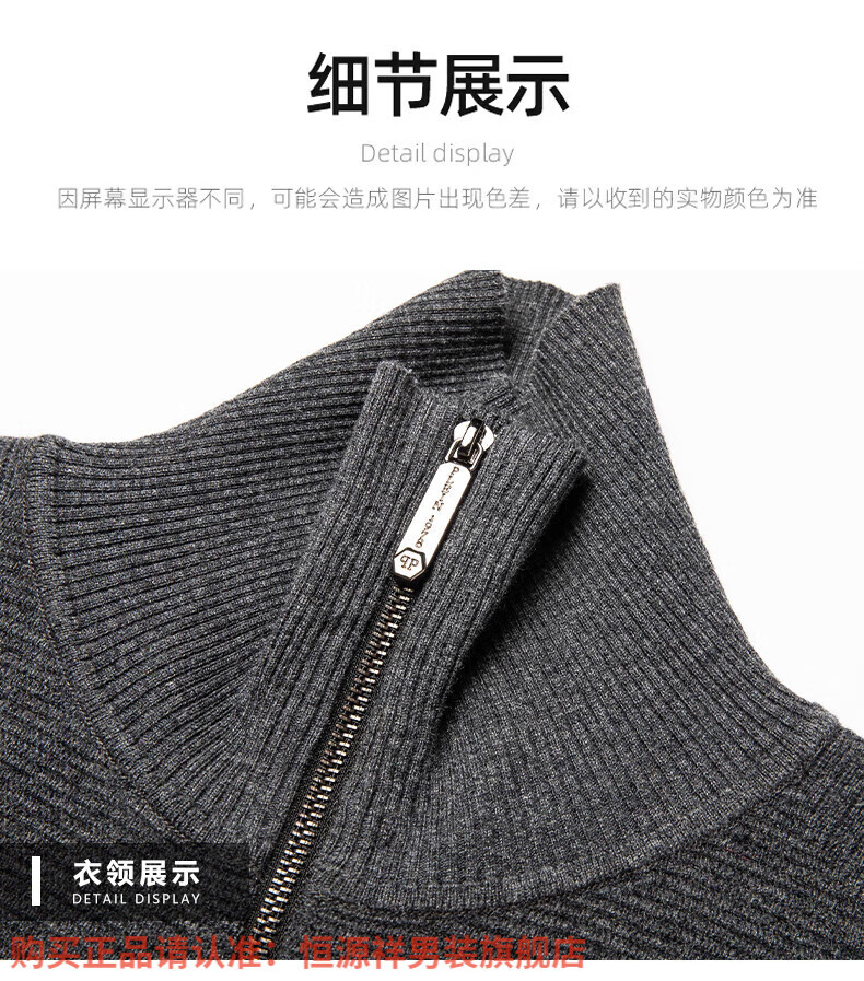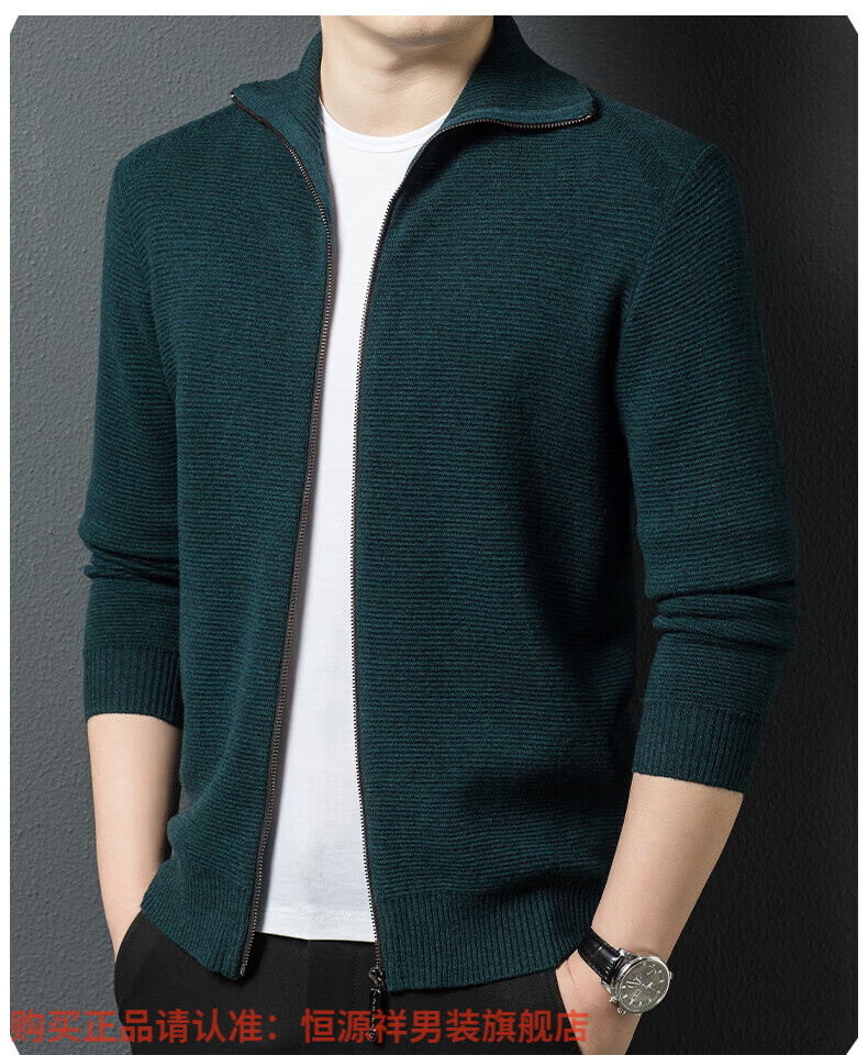 Hengyuanxiang high-end 100% wool sweater men's zipper jacket high collar thickened knitted cardigan autumn and winter casual men's sweater solid gray semi-worsted four-flat thickened 480g XL (180)