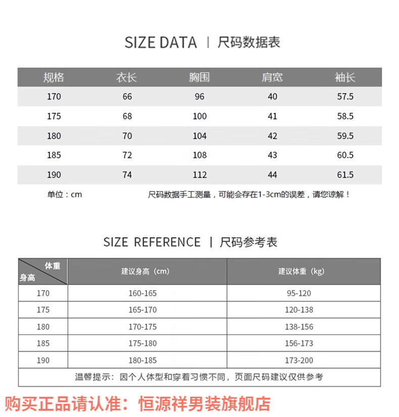 China (cm) 165 / 88-90 170 / 96-98 175 / 108-110 180 / 118-122 185 / 126-130