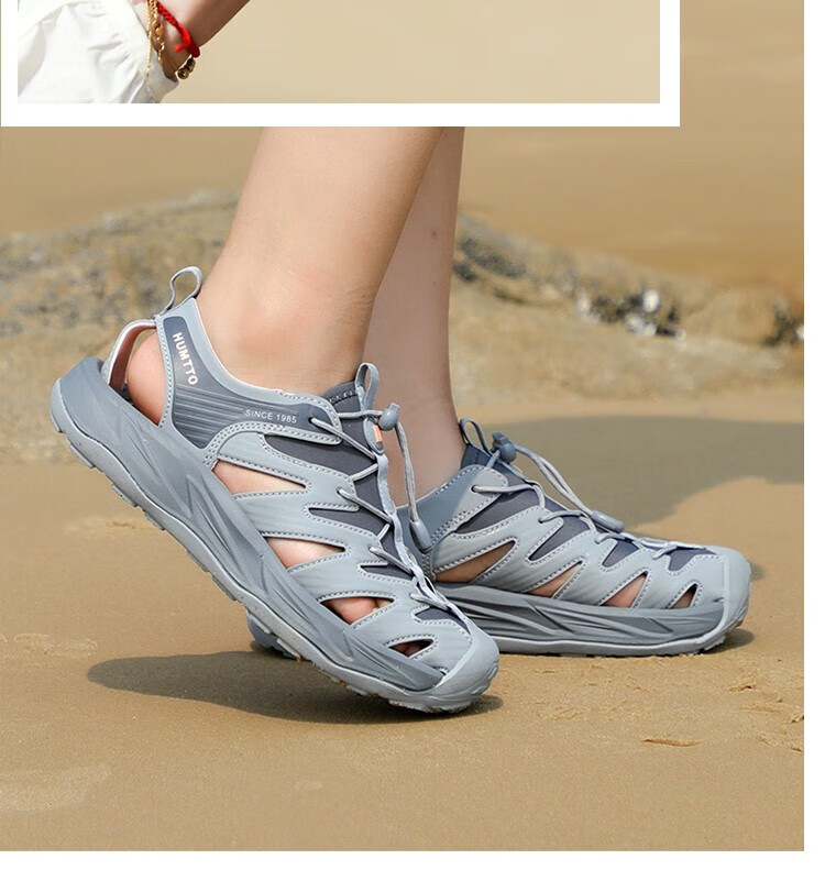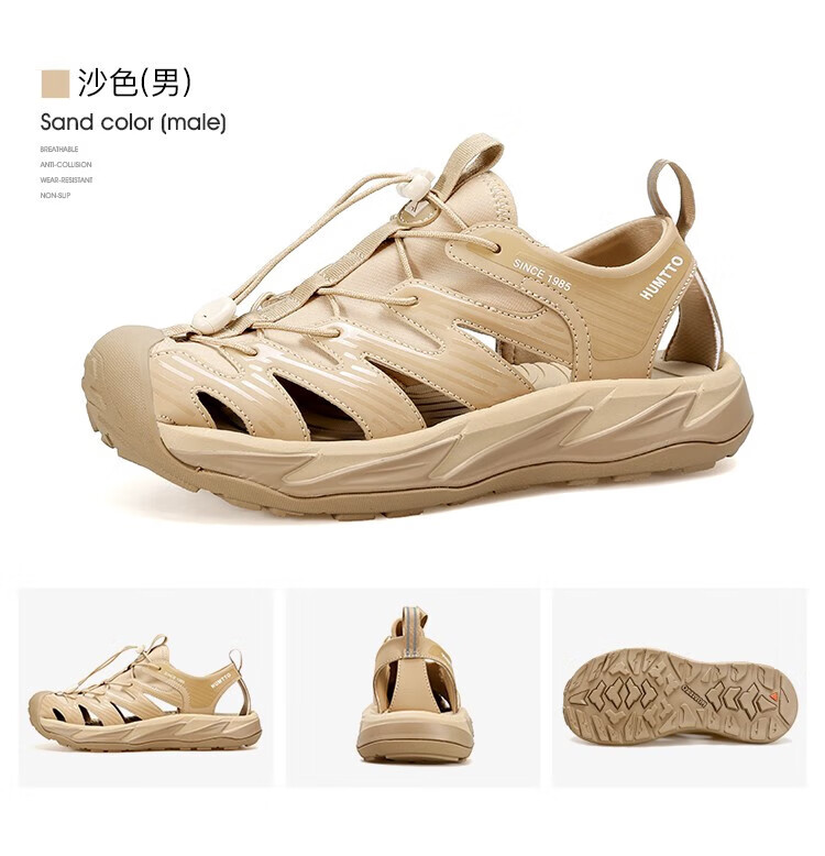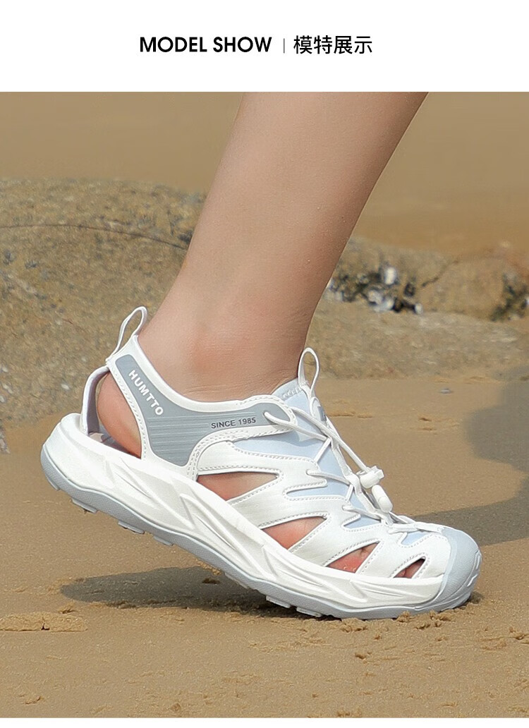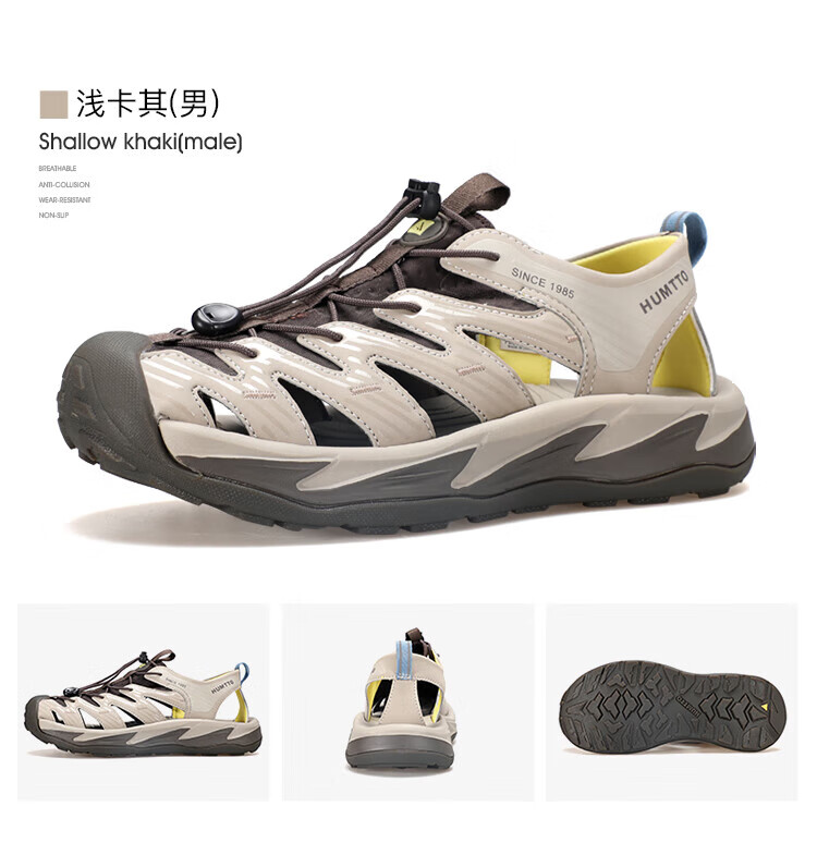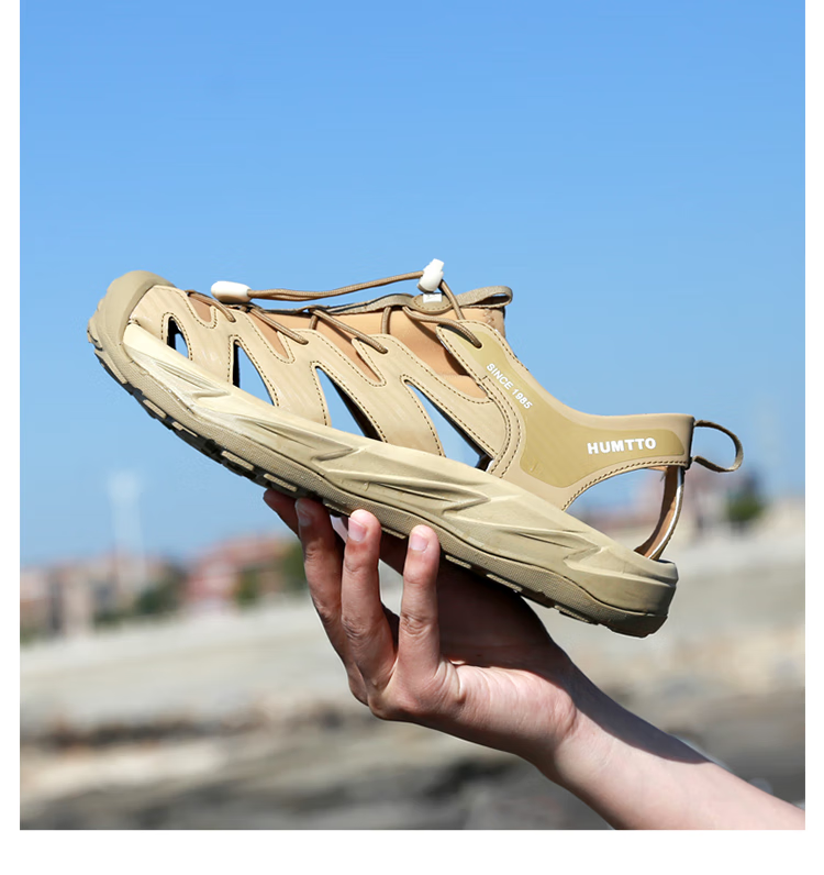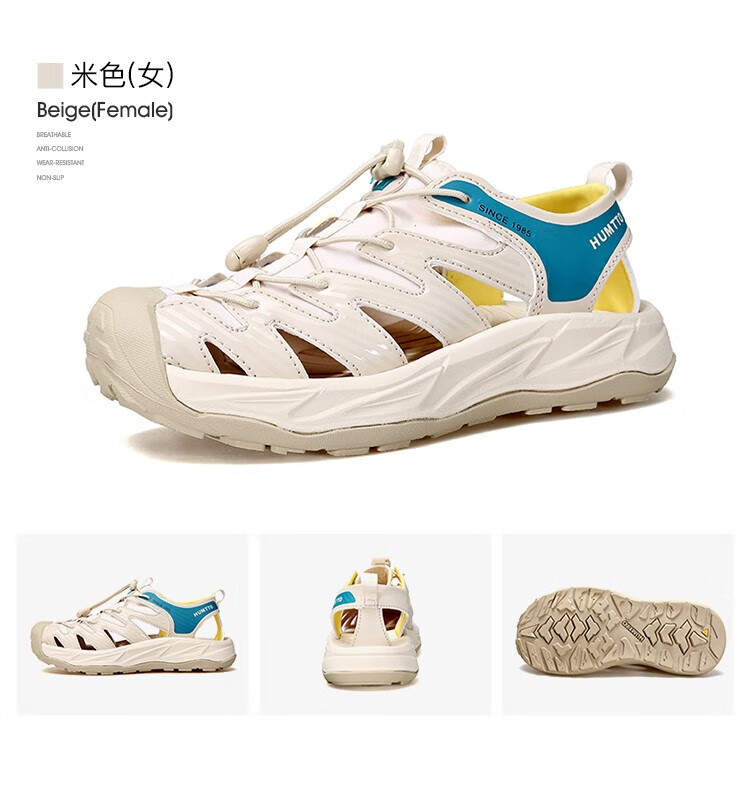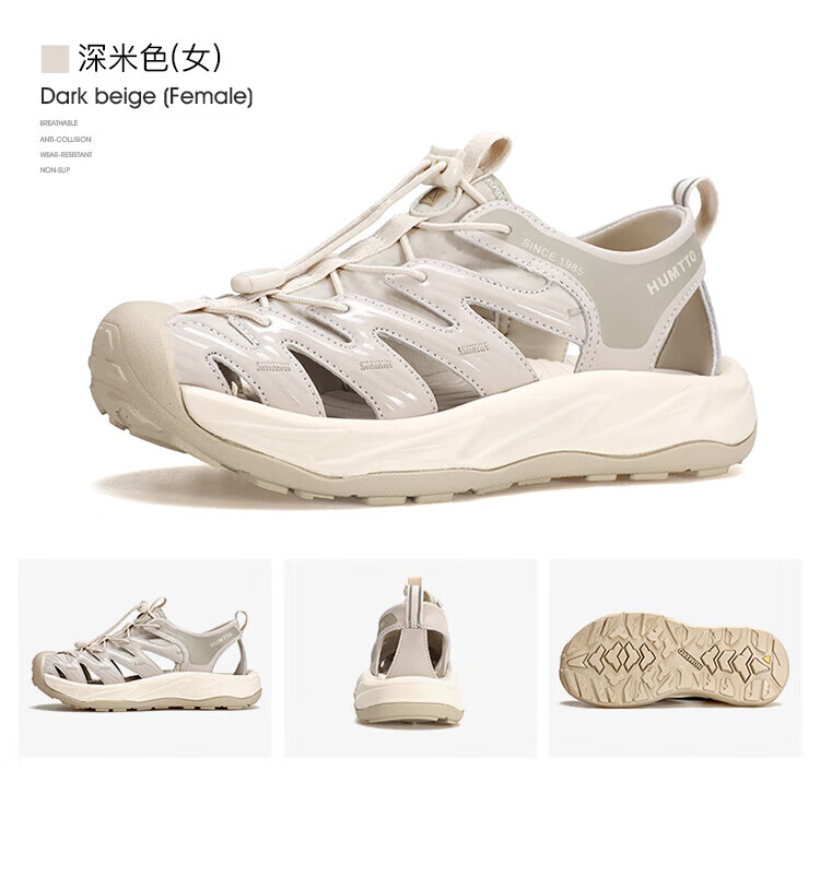 Humtto Sports Sandals Women's Baotou Anti-Collision Toe Guard Beach Shoes Men's Hiking Shoes Mountaineering Speed Interference Beige-Female 36