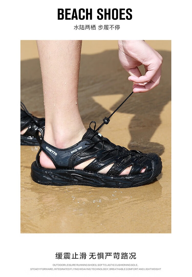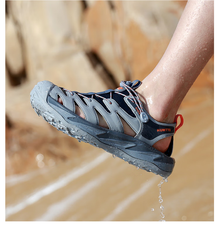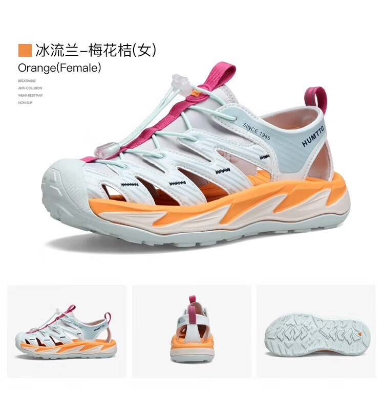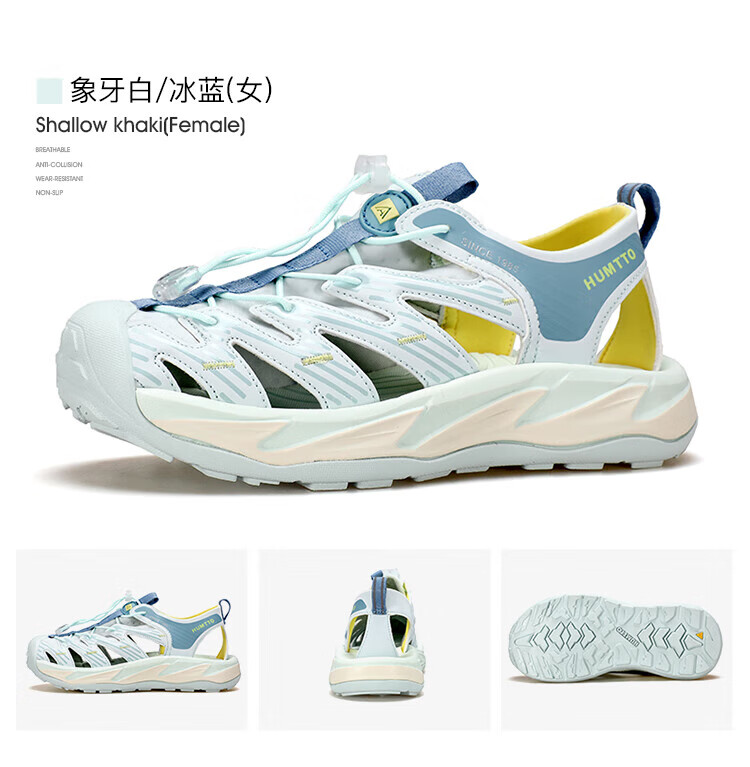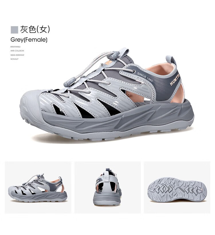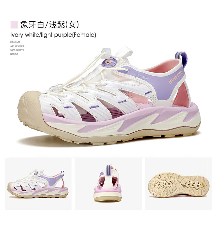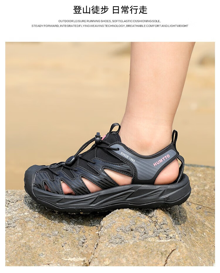 Humtto Sports Sandals Women's Baotou Anti-Collision Toe Guard Beach Shoes Men's Hiking Shoes Mountaineering Speed Interference Beige-Female 36