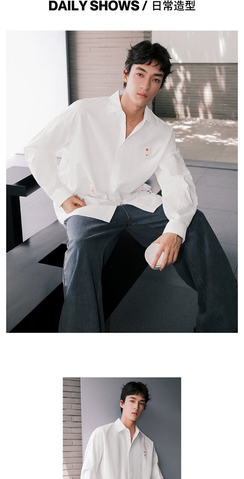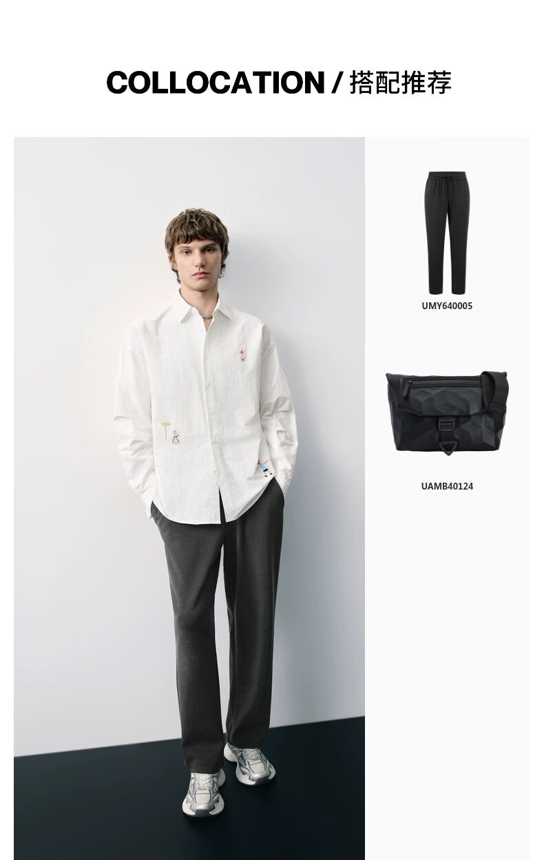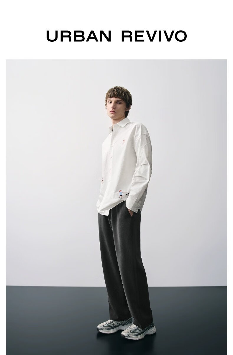 UR new autumn men's interesting pattern super loose long-sleeved cardigan shirt UMV250067 original white 2XL L (XL-)
