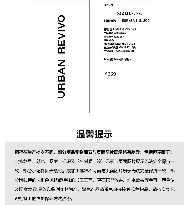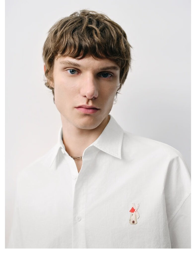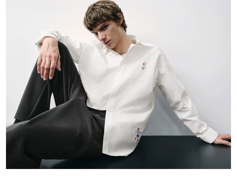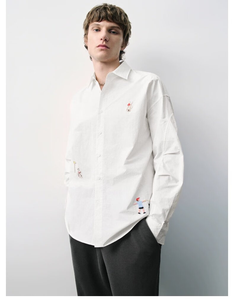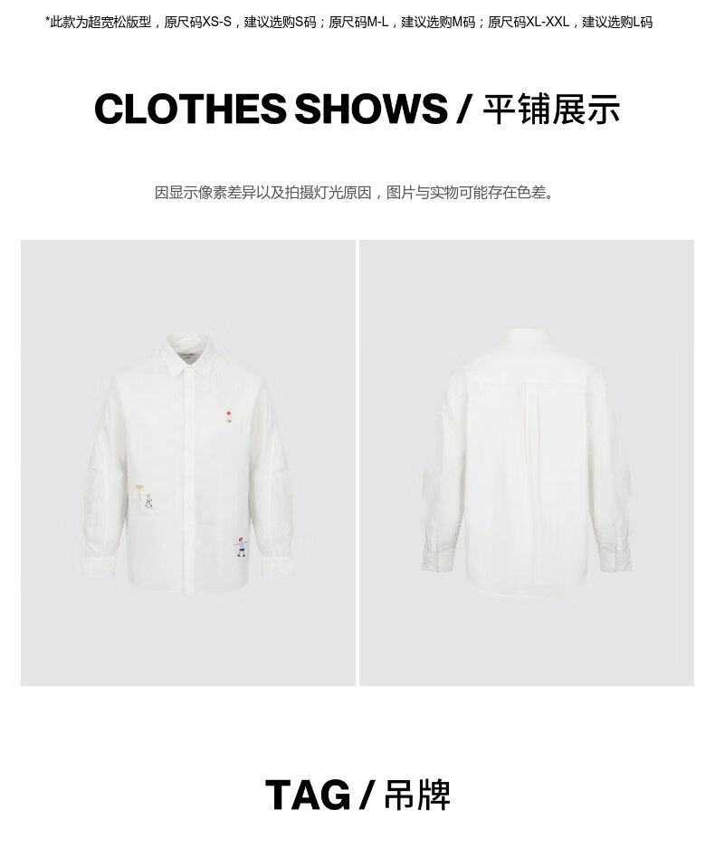 UR new autumn men's interesting pattern super loose long-sleeved cardigan shirt UMV250067 original white 2XL L (XL-)
