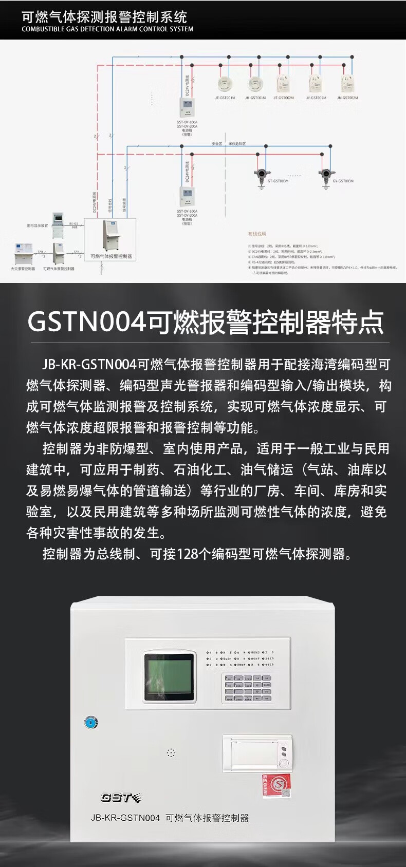 Gulf JB-KR-GSTN004 combustible gas alarm controller JT-GST001M combustible gas detector GSTN004/8 points