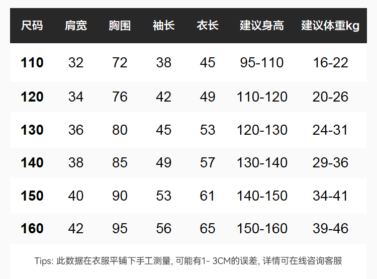 China (cm) 160-165/84-86 165-170 / 88-90 167-172 / 92-96 168-173 / 98-102 170-176 / 106-110