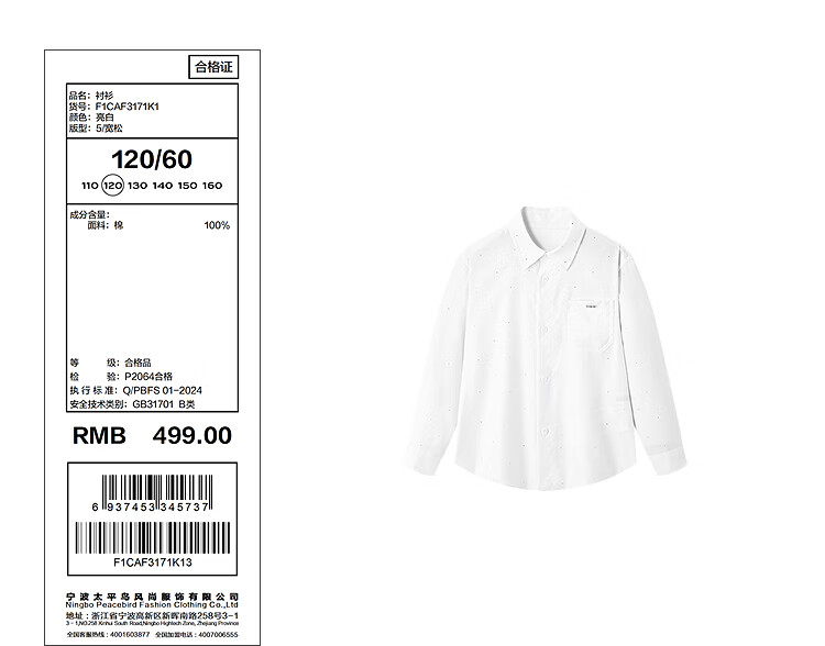 MiniPeace counter same style PEACEBIRD children's clothing boys pure white shirt children's shirt flower girl wedding white 120