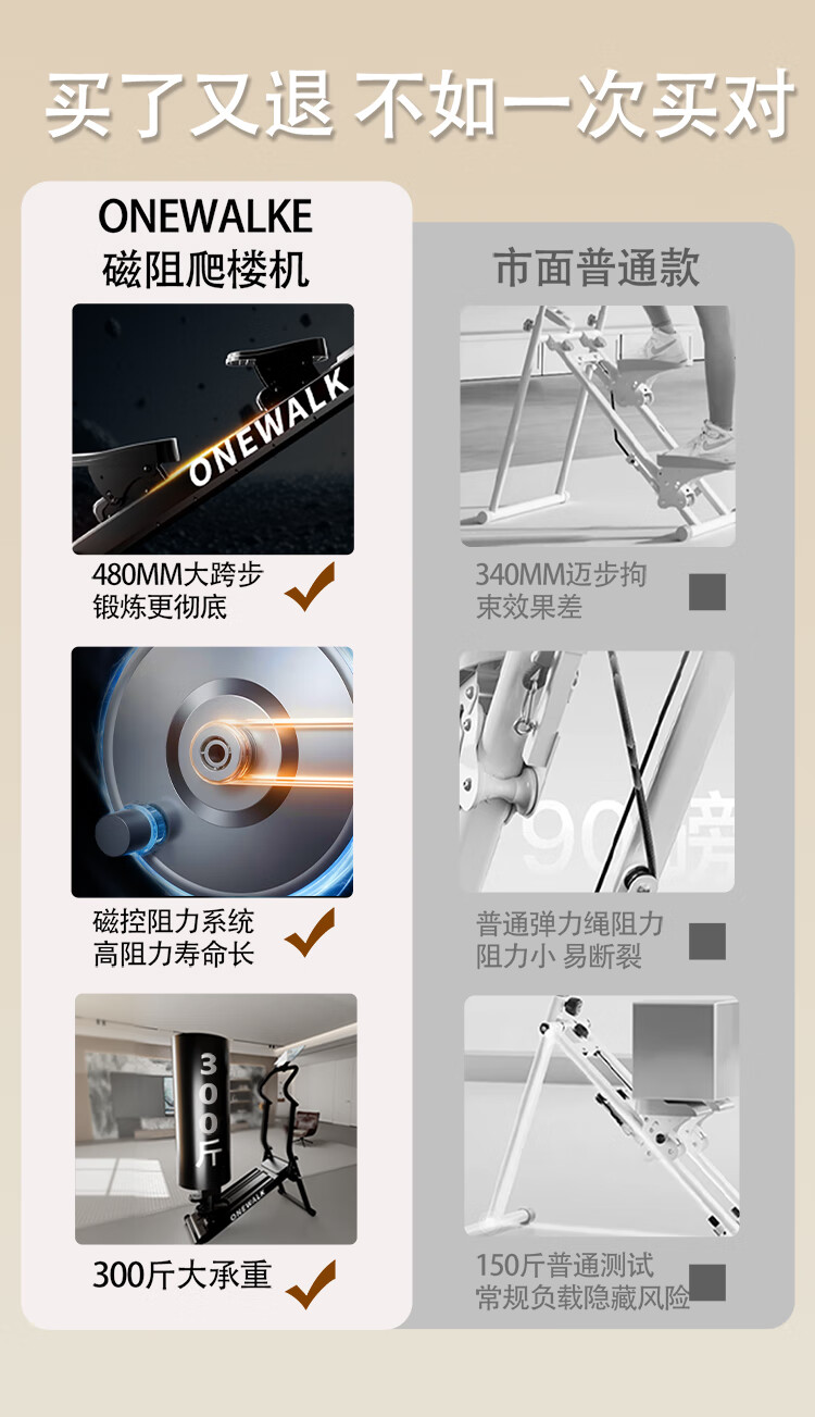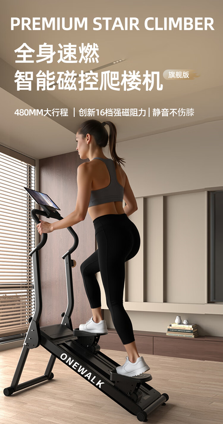ONEWALK multifunctional stair climbing machine, home sports and fitness equipment, belly slimming in-situ stepper, climbing and mountaineering stair climbing machine model 3408 upgraded model, 3 levels of height adjustment丨16 levels of magnetic control resistance