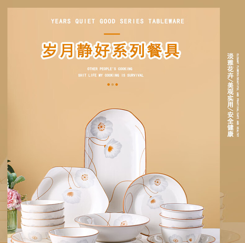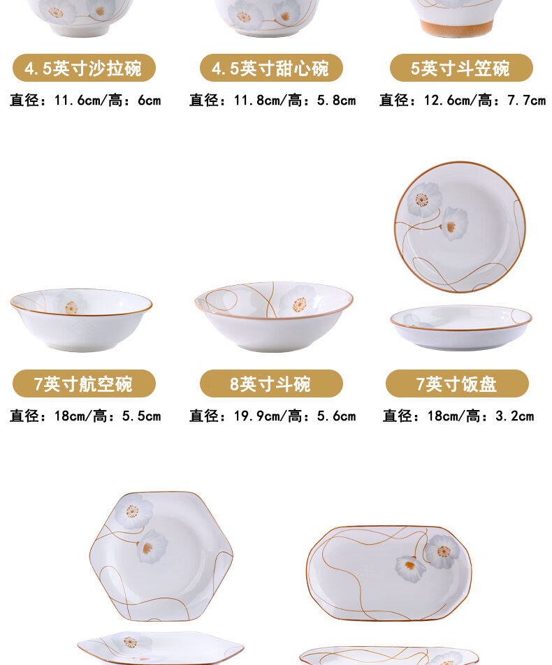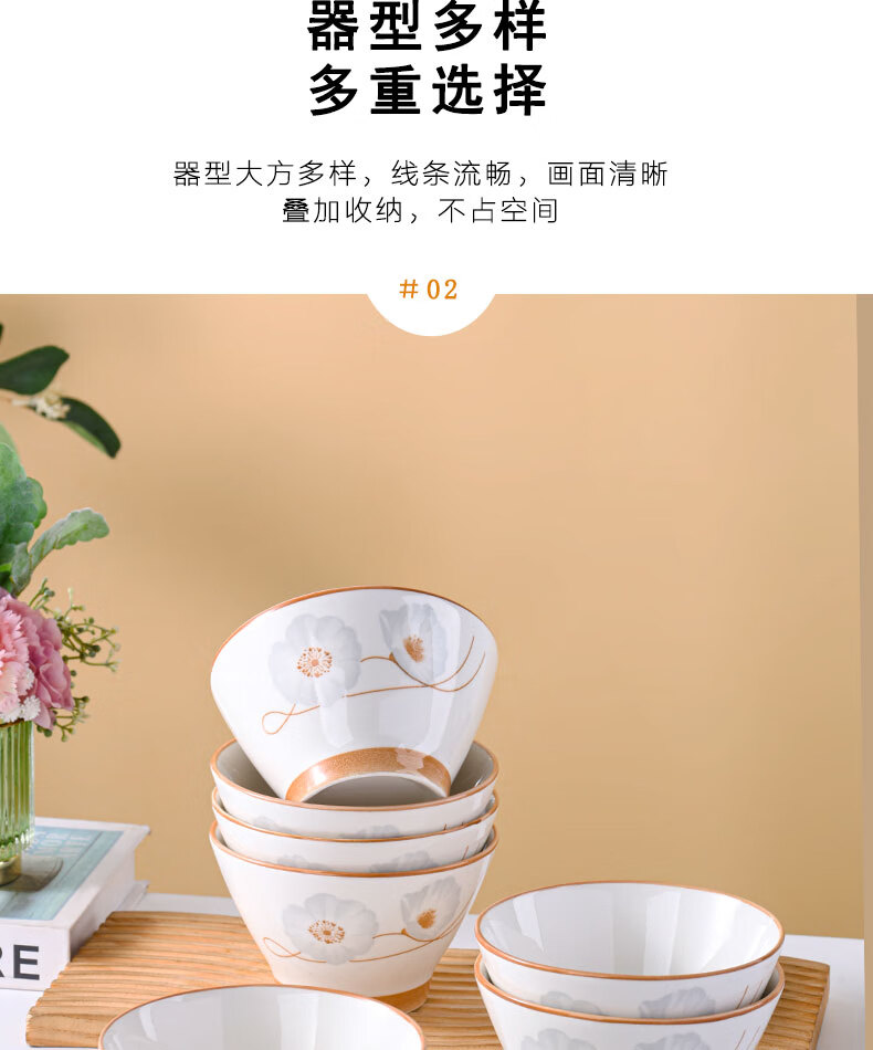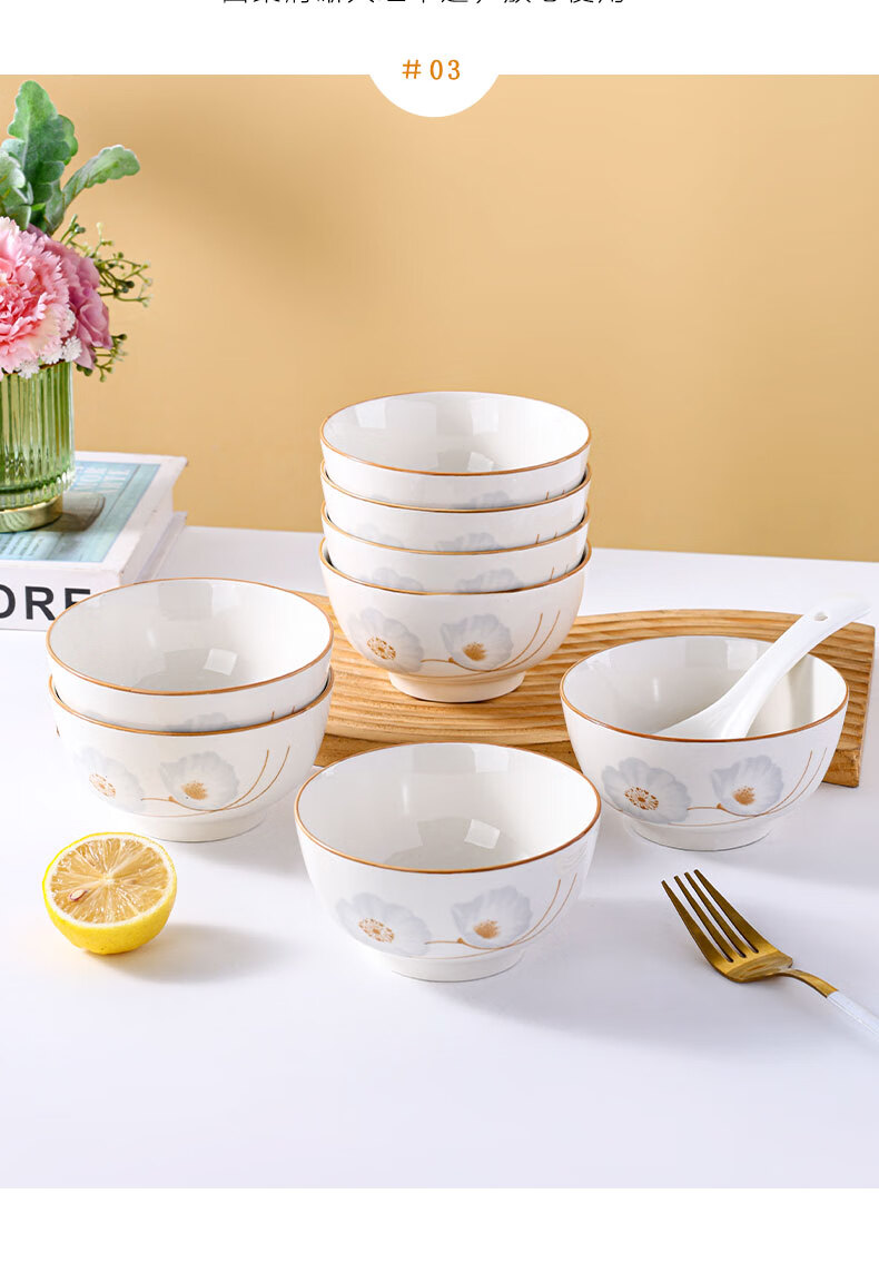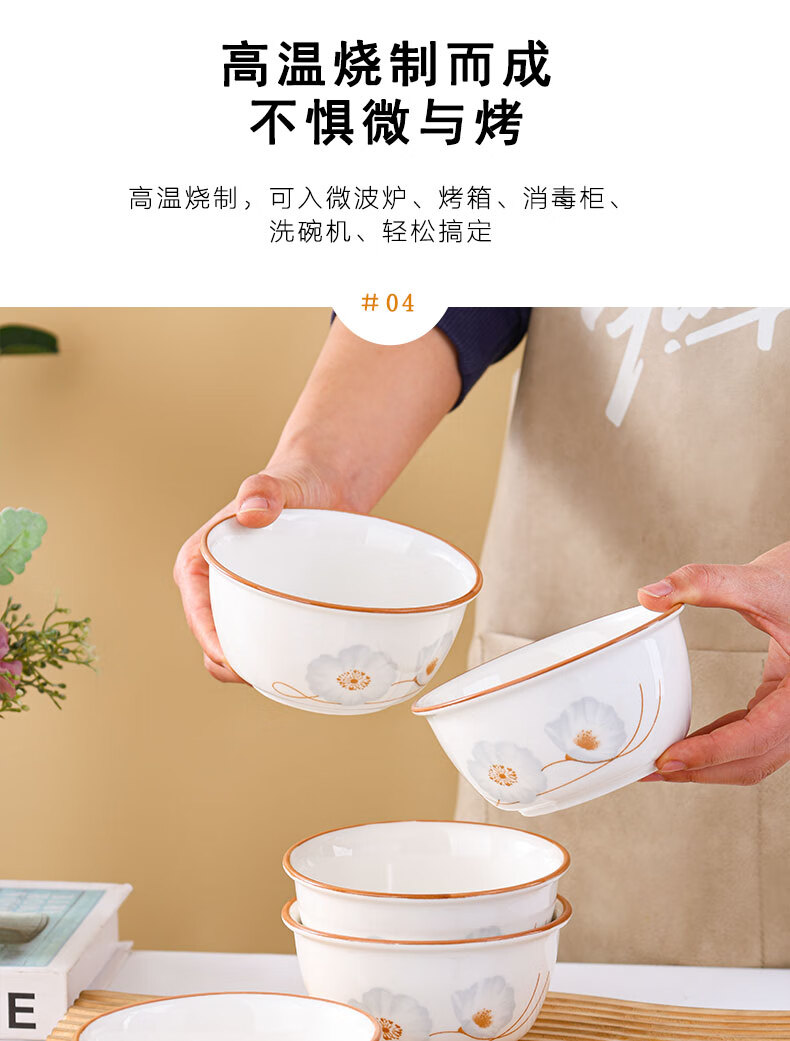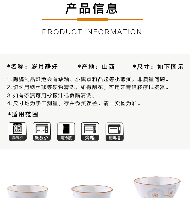 Ceramic bowl for home use 2024 new style festive housewarming new home dishes and tableware set years of peace and quiet rice bowl years of peace and quiet 6-piece bamboo hat bowl 5 inches