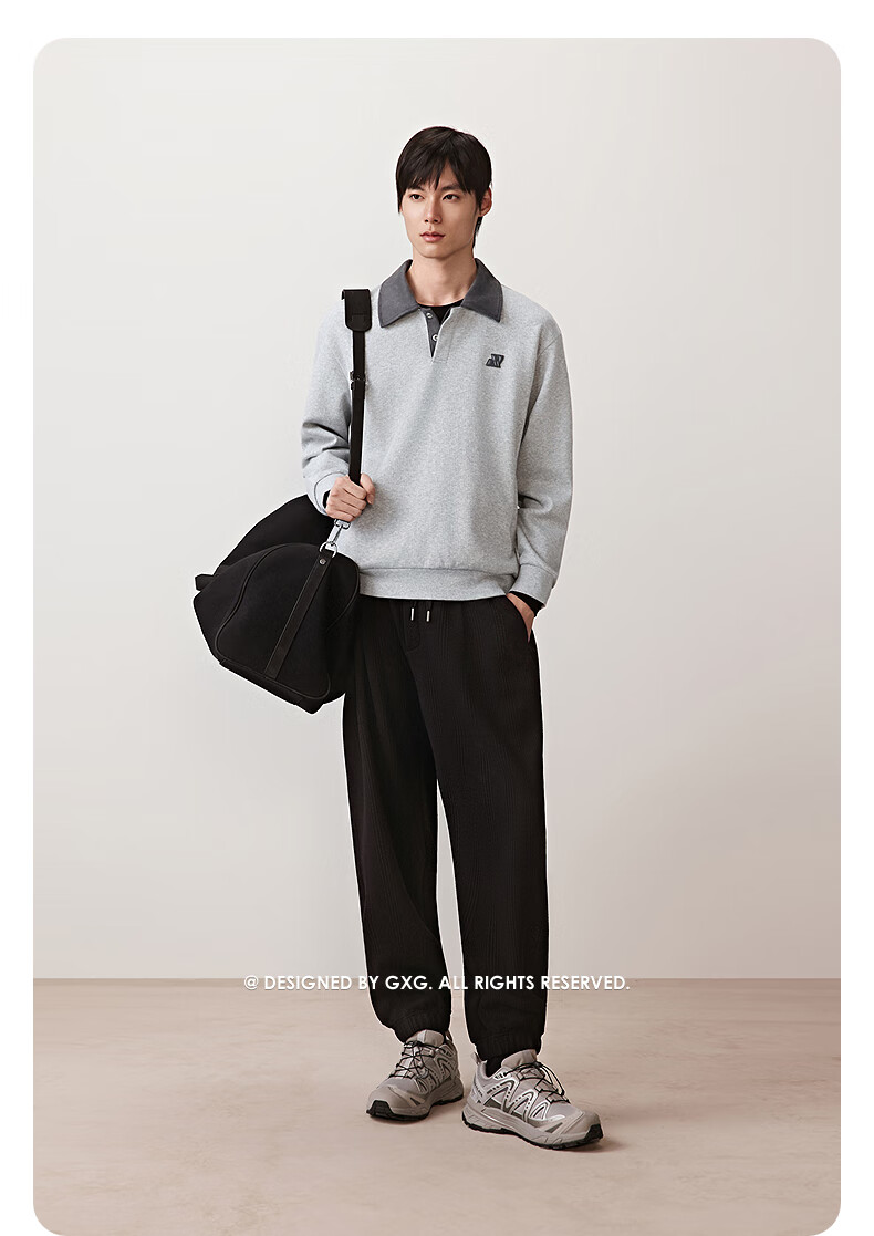 GXG men's jacquard texture leggings commuting loose sweatpants men's sports casual pants 2025 autumn new black L