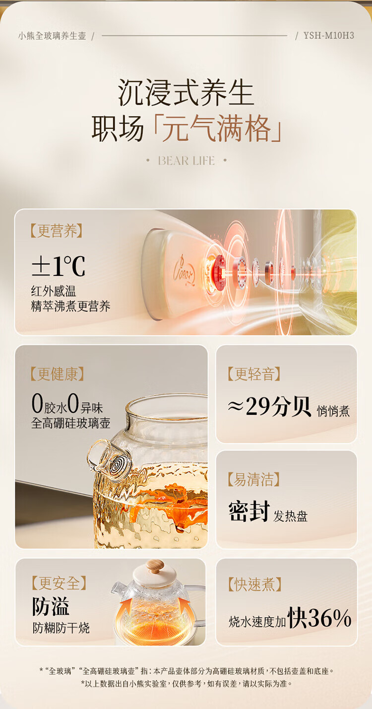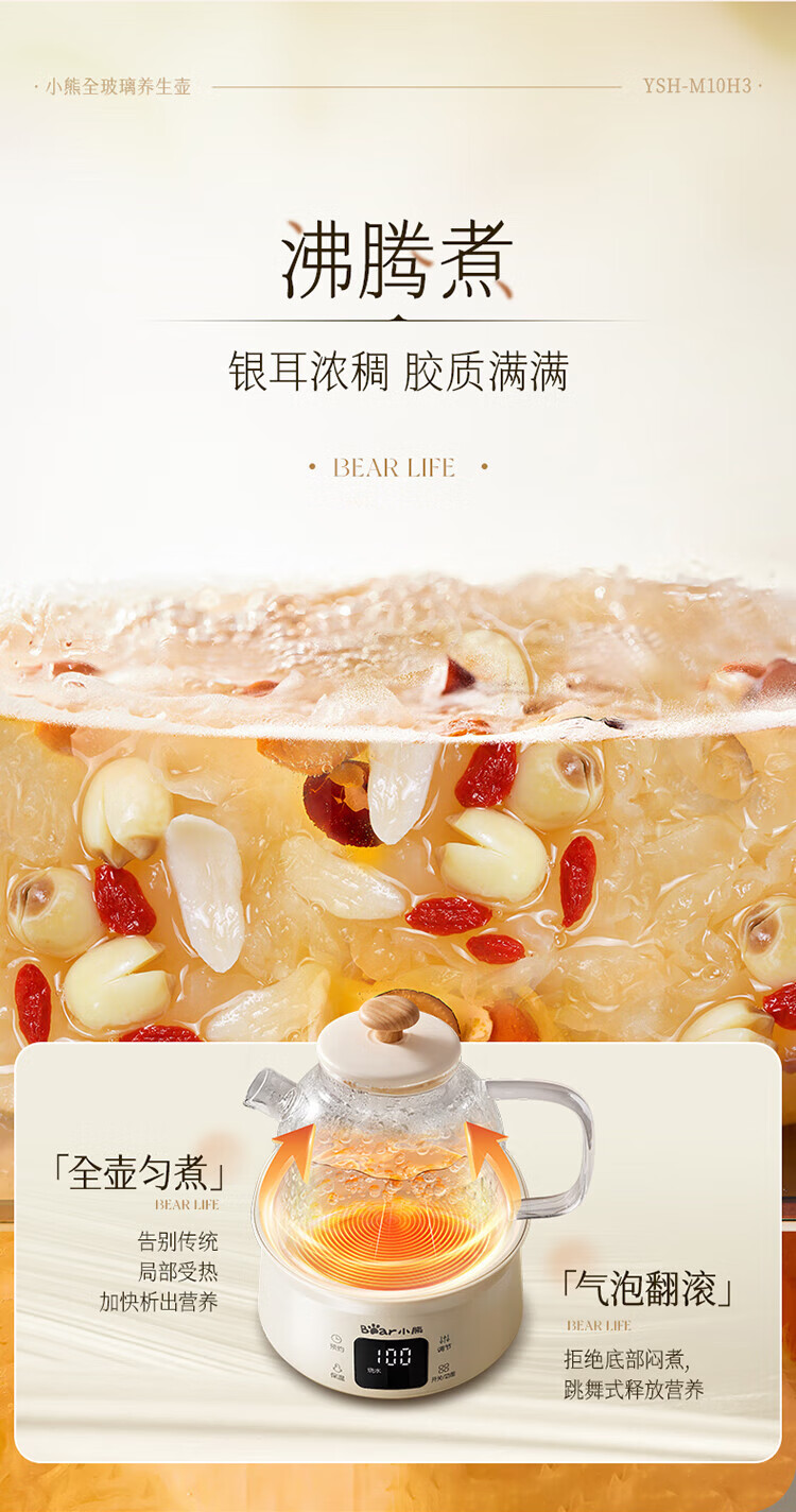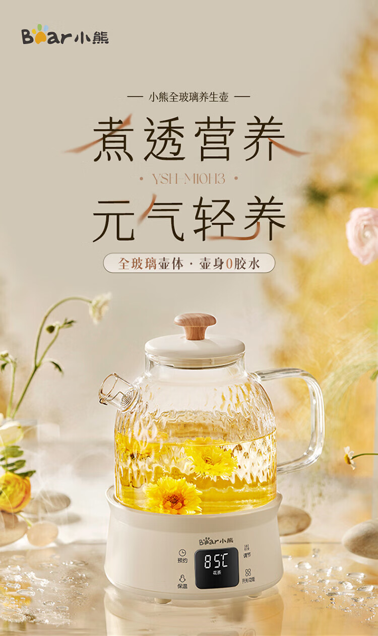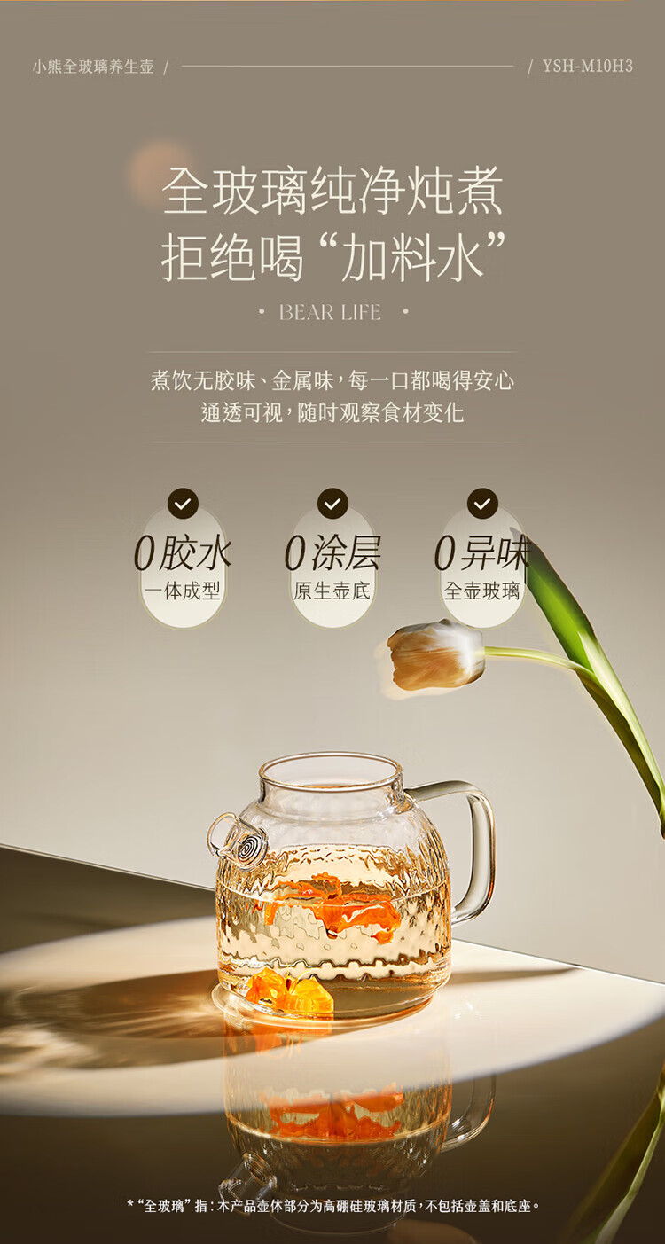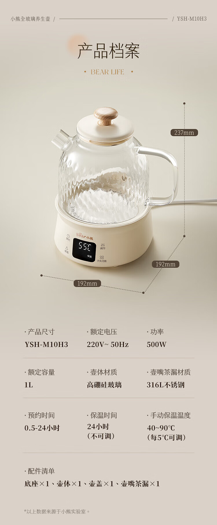 Bear (Bear) all-glass body health pot thermostatic kettle office multi-function teapot flower teapot 0 metal health cup 24h reservation 24h heat preservation 1L YSH-M10H3 all glass