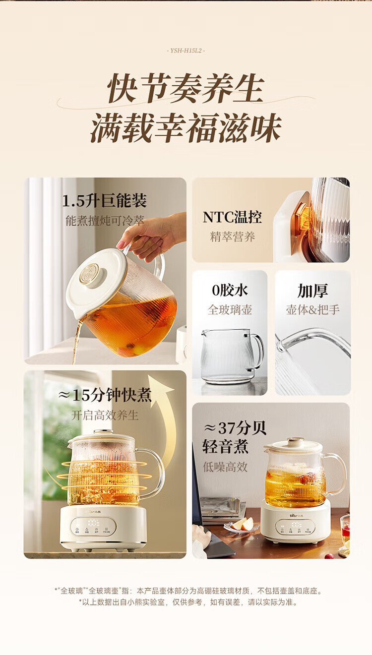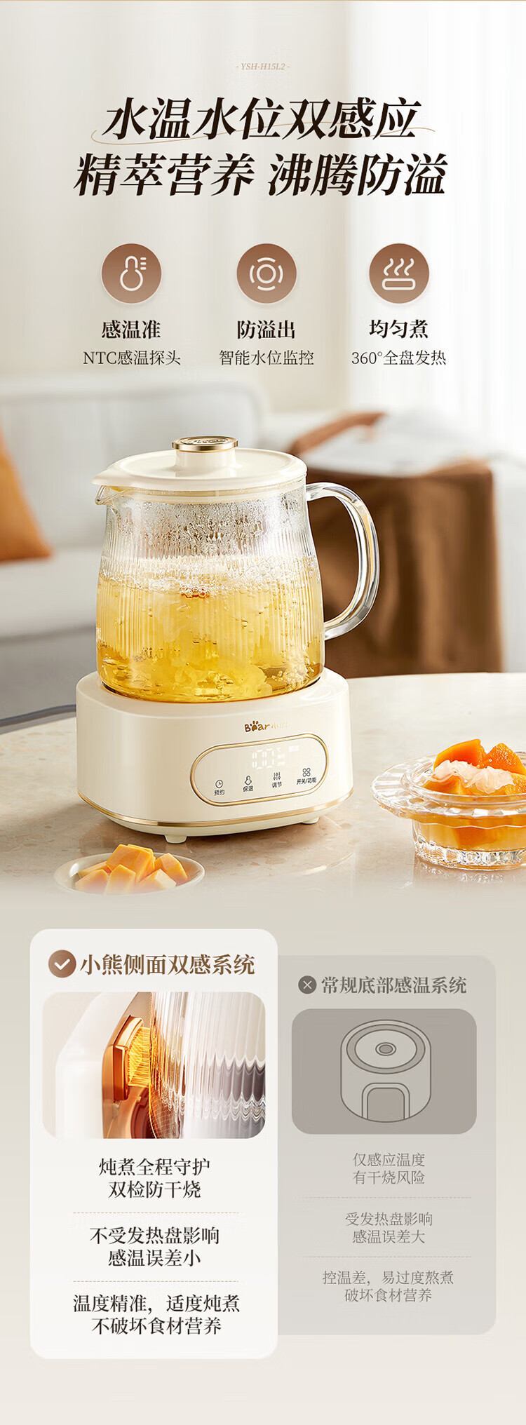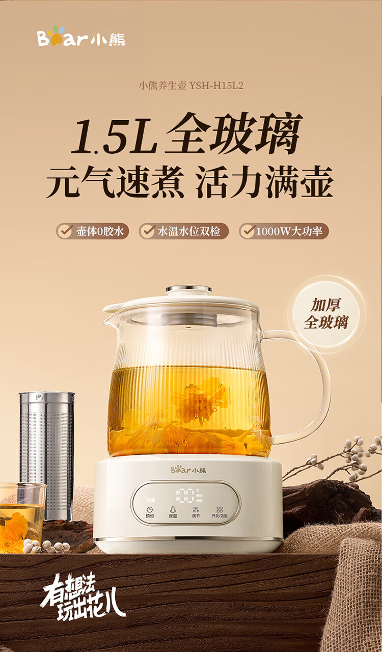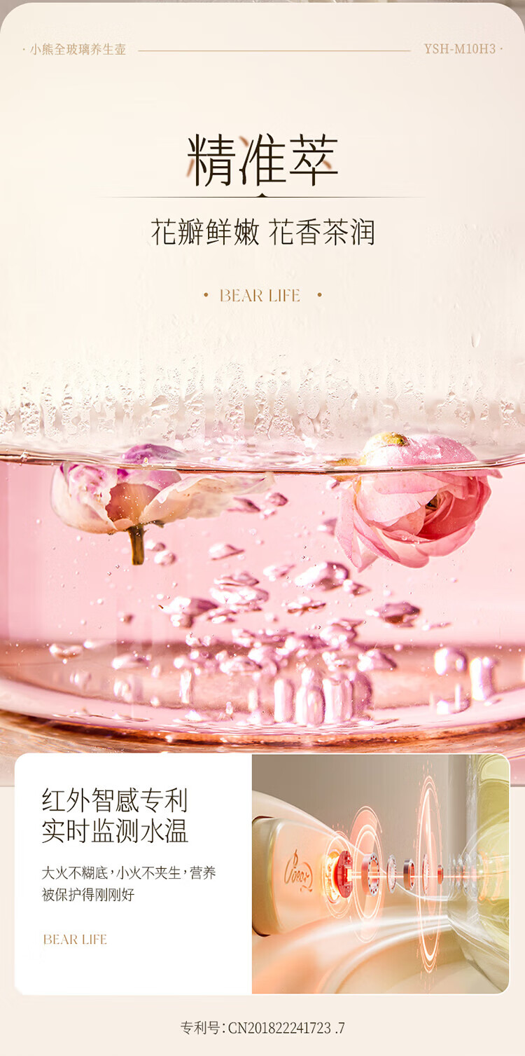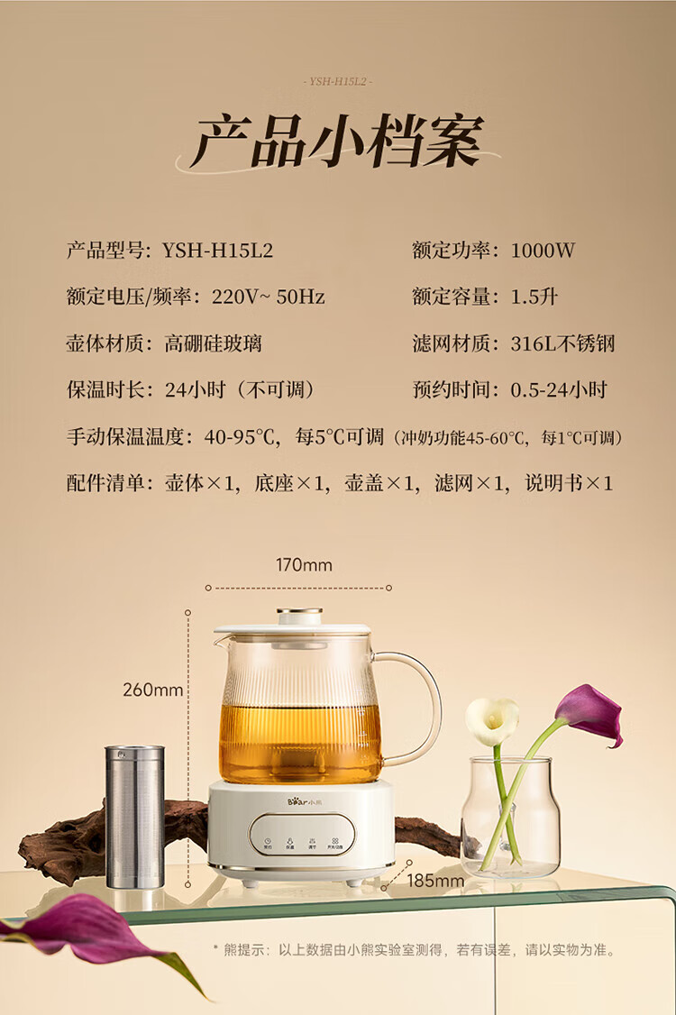 Bear (Bear) all-glass body health pot thermostatic kettle office multi-function teapot flower teapot 0 metal health cup 24h reservation 24h heat preservation 1L YSH-M10H3 all glass